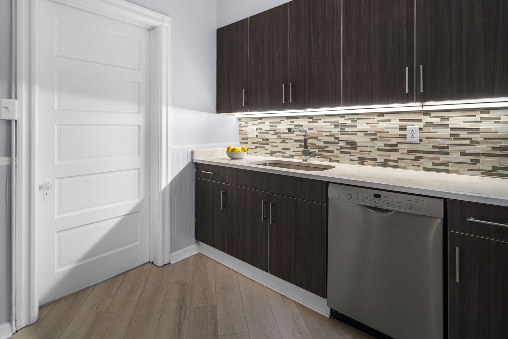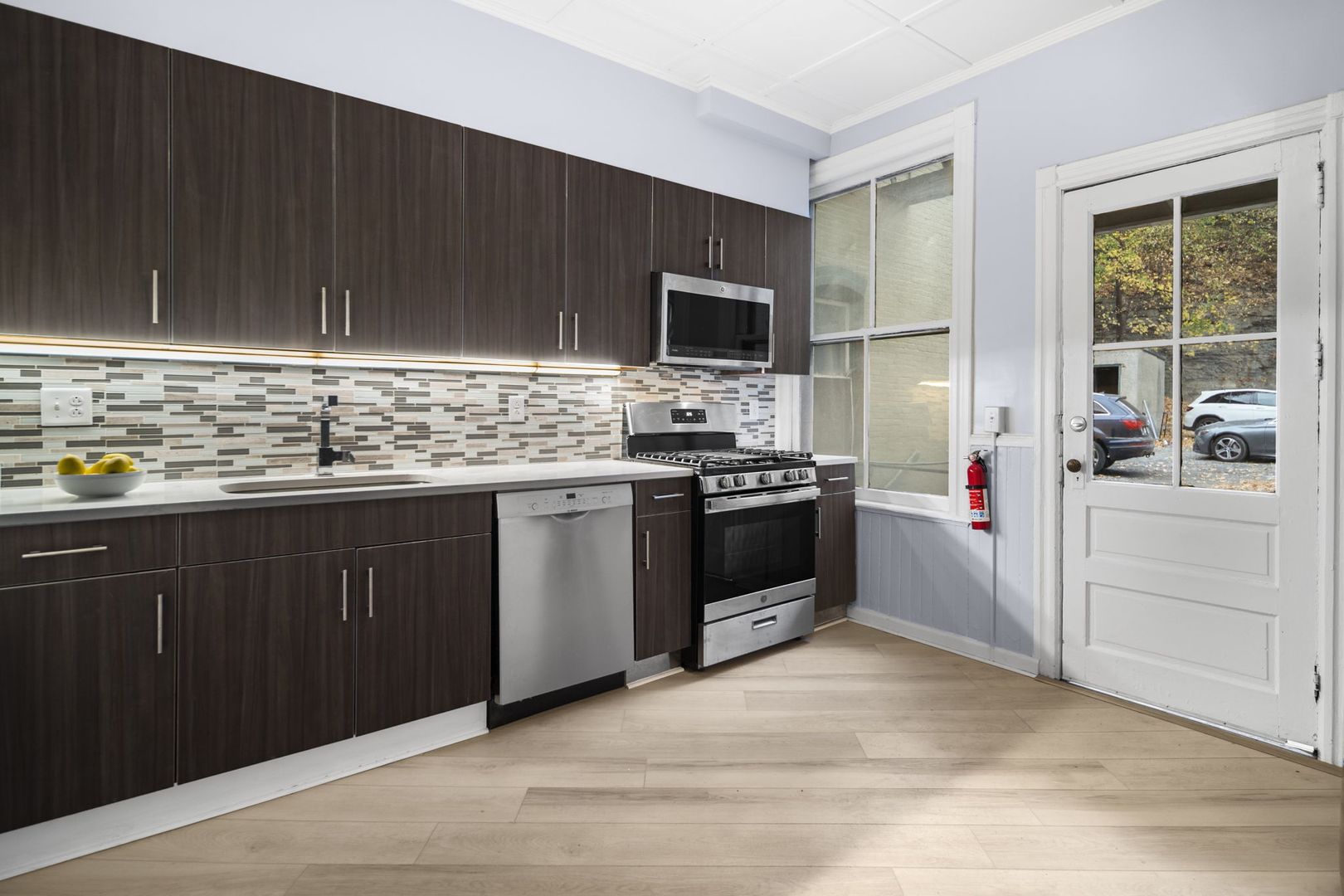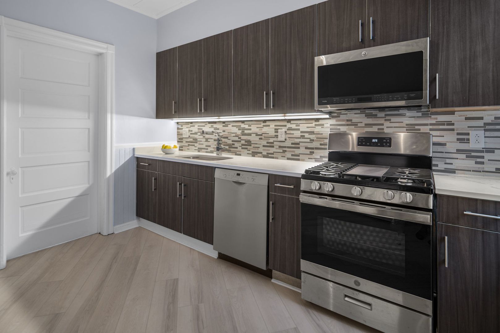 Each apartment comes fully furnished and features major upgrades throughout! Enjoy this home's classic charm blended with modern amenities like custom tile baths with glass shower surrounds, LED vanity mirrors, modern lighting and hardware and modern interior design. The kitchens feature a full suite of new stainless steel appliances (Fridge, Oven/Range, Dishwasher and Microwave), wood cabinets, and brand new, stunning quartz countertops. Common areas feature thoughtful furnishings including wall-mounted flat screen TVs and LED Fireplace. Additional furnishings include a couch, dining room table and chairs or kitchen counter seating.