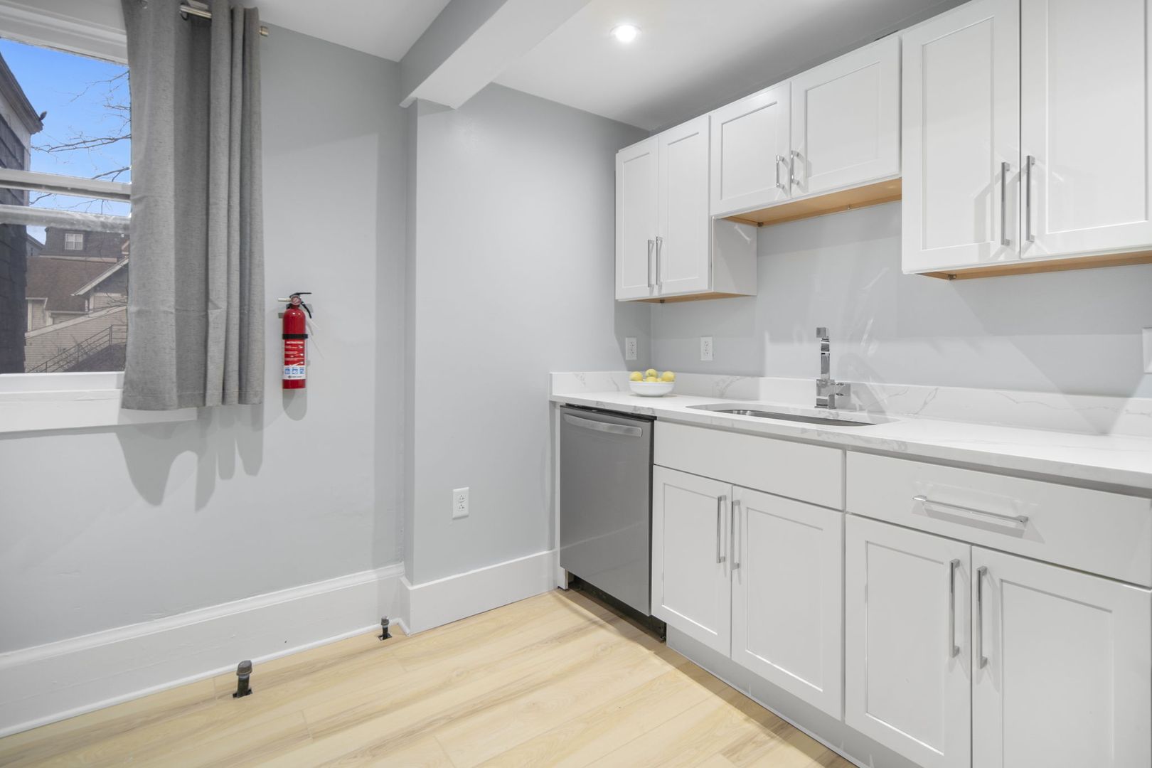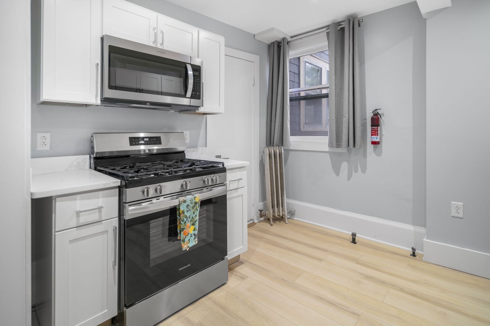 Each apartment comes fully furnished and features all new kitchens, upgraded bathrooms, new flooring and remodeled living and bedroom areas. Enjoy this home's classic charm blended with modern amenities like custom tile baths, LED vanity mirrors, smart lights and digital door access. The kitchens feature a full suite of new stainless steel appliances, wood cabinets, and quartz countertops. Common areas feature new furnishings including wall-mounted flat screen TVs and space for living and dining accordingly. Additional Furnishings include a couch, dining room table and chairs or kitchen counter seating, full size bed frame and mattress, desks and desk chair, and closet and dressers or large armoire in each bedroom.