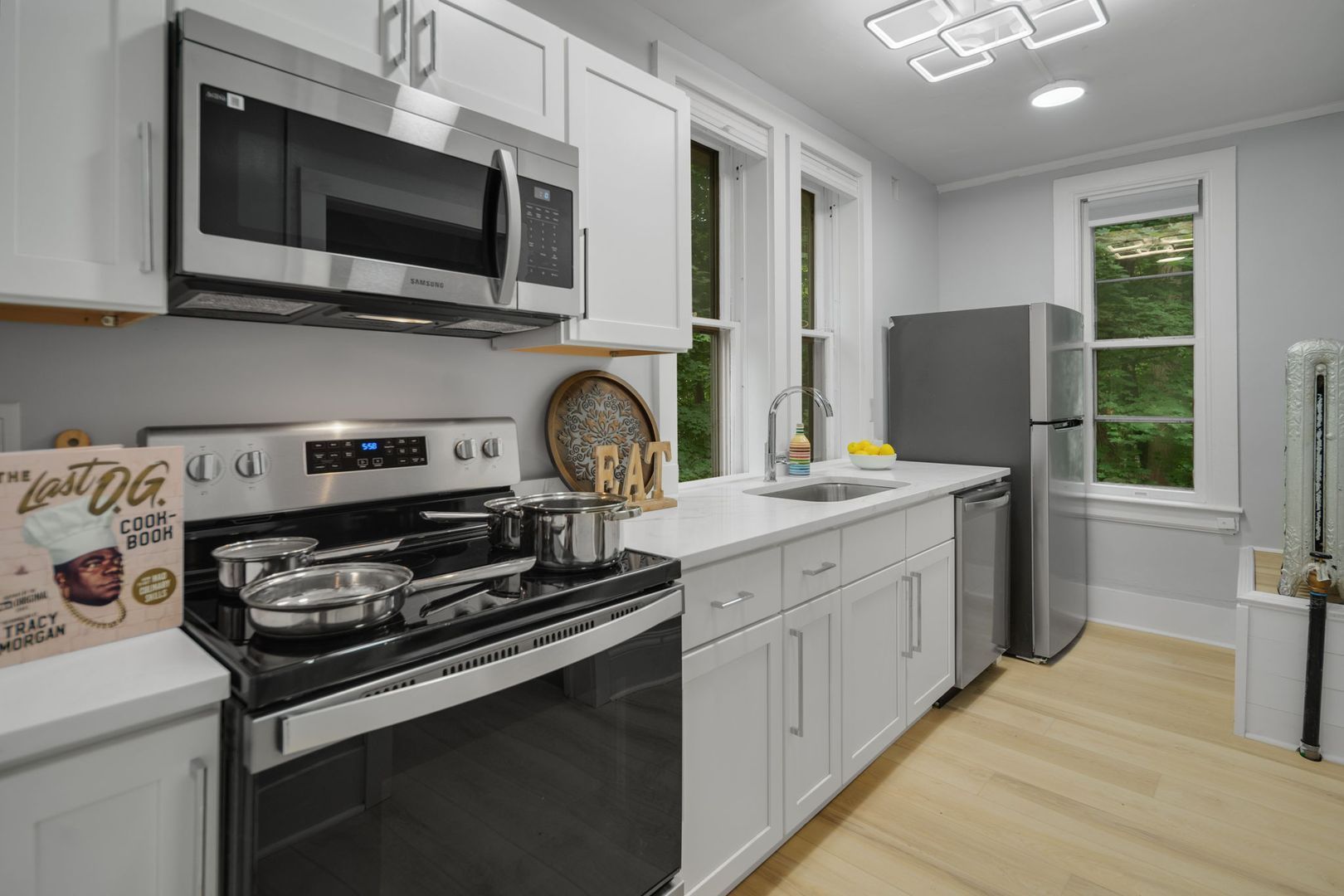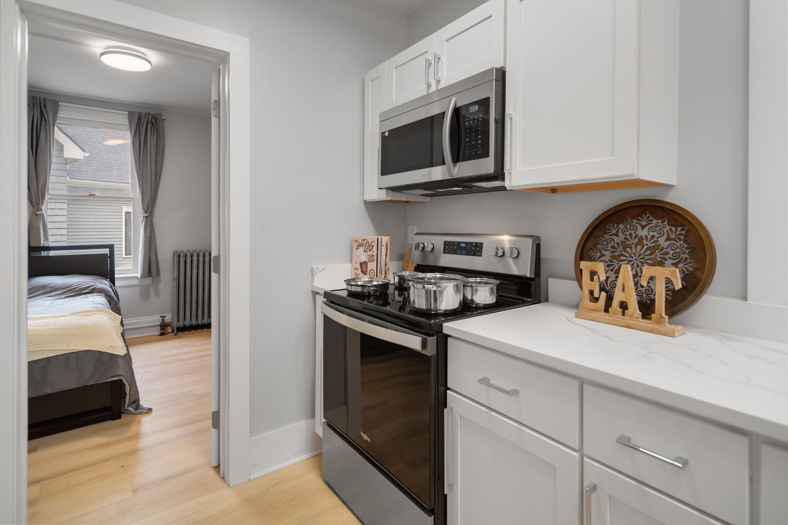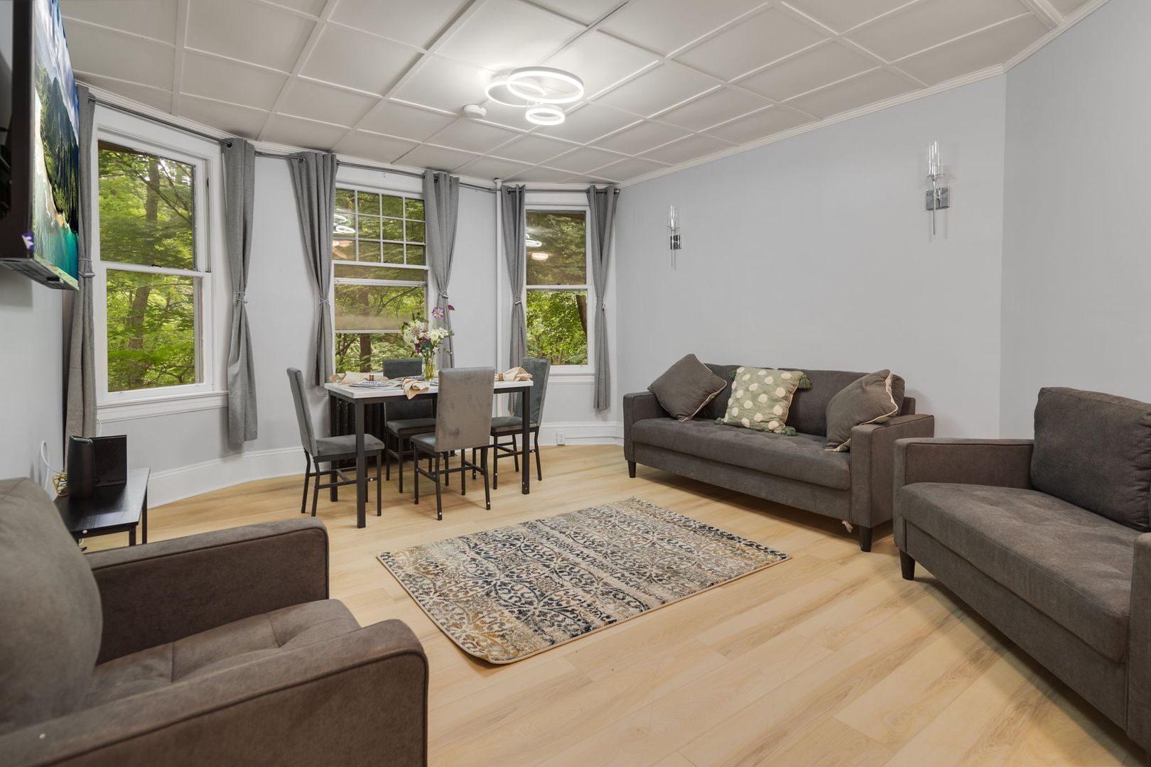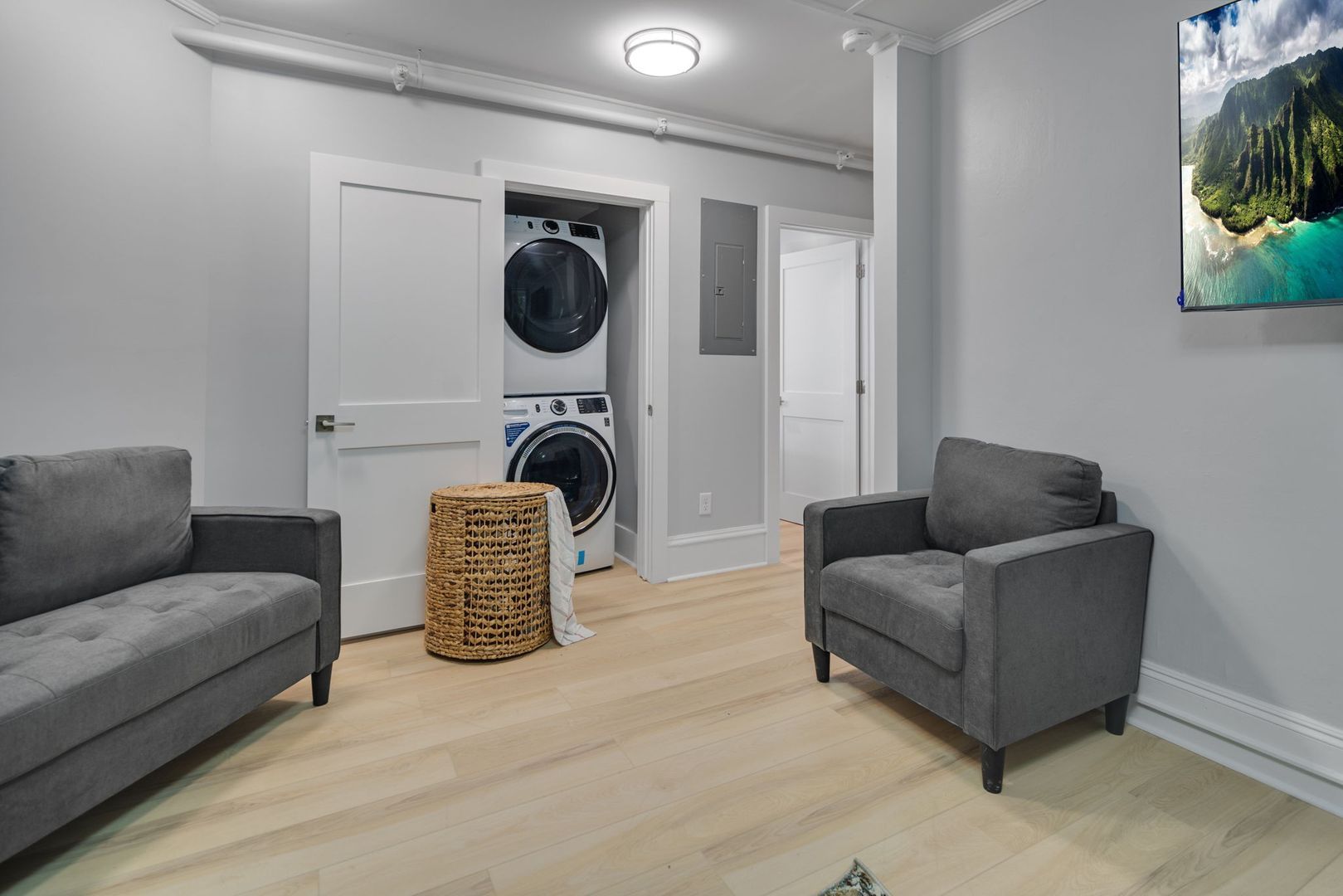 Each apartment comes fully furnished and features all new kitchens, upgraded bathrooms, new flooring and remodeled living and bedroom areas. Enjoy this home's classic charm blended with modern amenities like custom tile baths, LED vanity mirrors, smart lights and digital door access. The kitchens feature a full suite of new stainless steel appliances, wood cabinets, and quartz countertops. Common areas feature new furnishings including wall-mounted flat screen TVs and space for living and dining accordingly. Additional Furnishings include a couch, dining room table and chairs or kitchen counter seating, full size bed frame and mattress, desks and desk chair, and closet and dressers or large armoire in each bedroom.