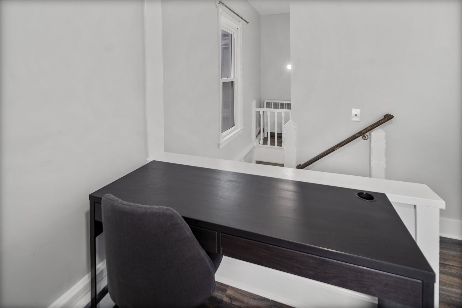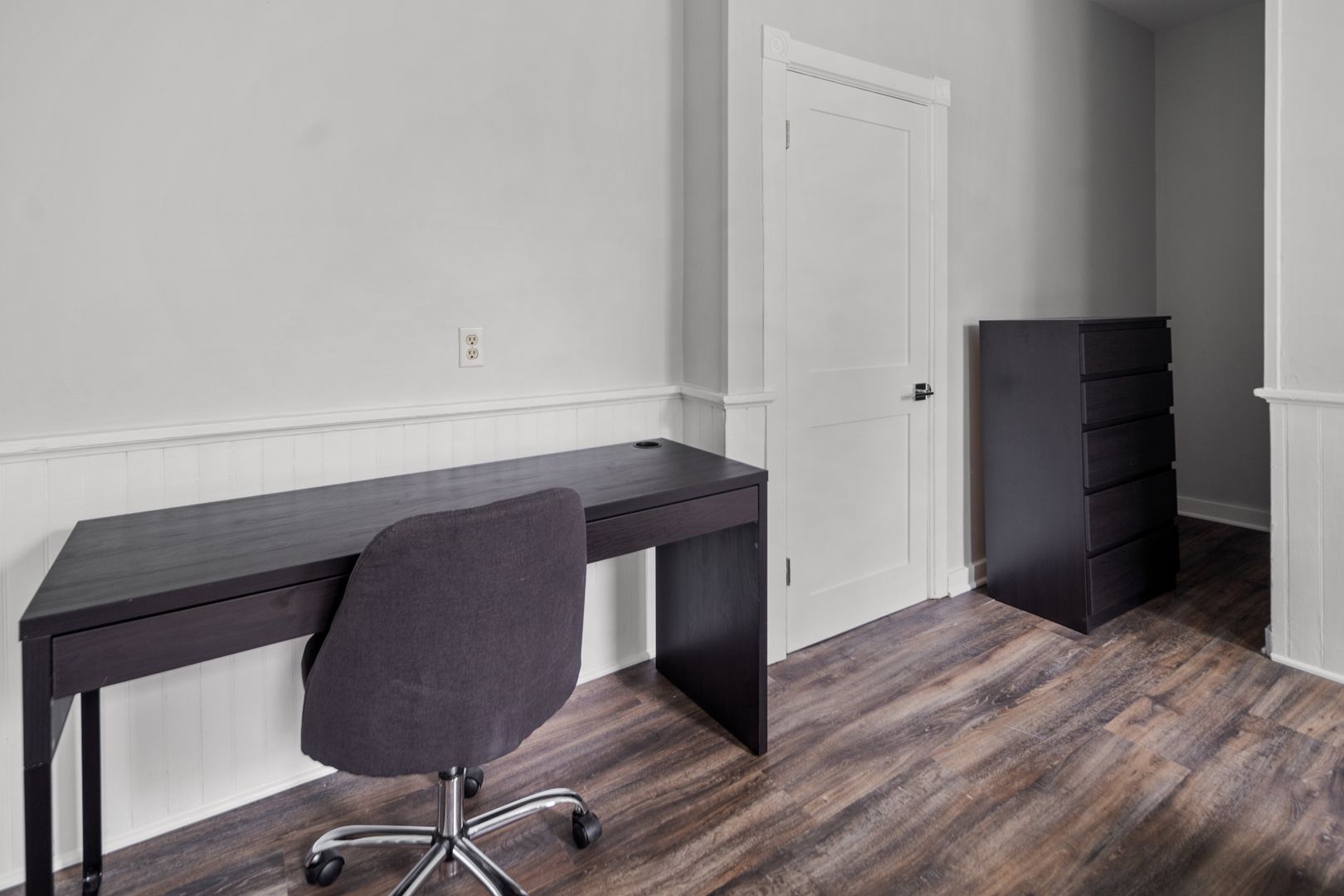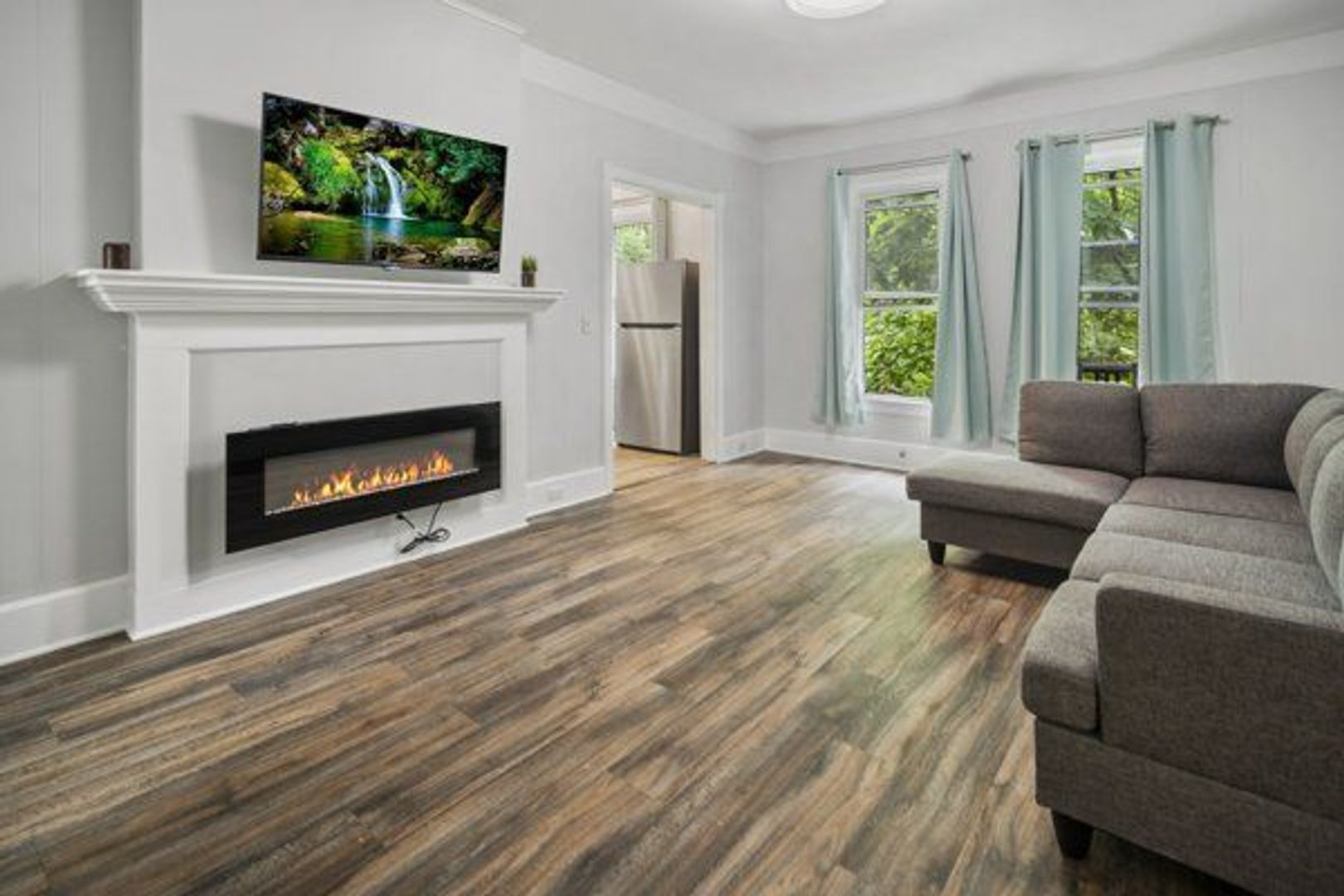 The home is available fully-furnished with a couch, kitchen table, and chairs. Beds, desks, and dressers are also provided at no extra cost. Wall mounted television and LED fireplace are also included!