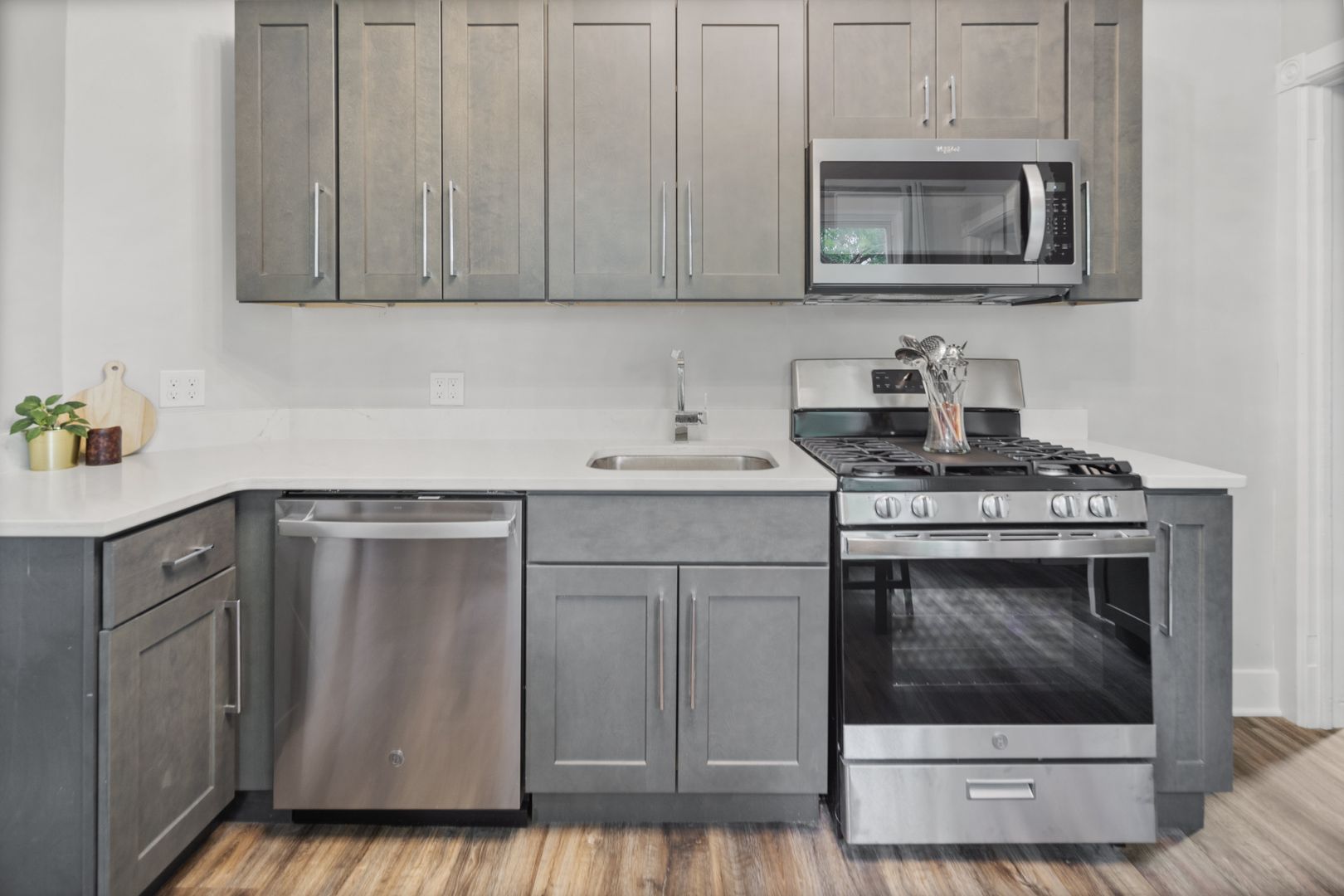 This 4 bedroom apartment was remodeled in the summer of 2022. Renovations include all new flooring and contemporary finishes. Enjoy this home's classic charm with modern amenities like in-unit laundry and stylish new lighting fixtures. The updated kitchen now features quartz countertops and new stainless steel appliances- fridge, stove, and dishwasher. Both full bathrooms have brand new vanities and tiling.