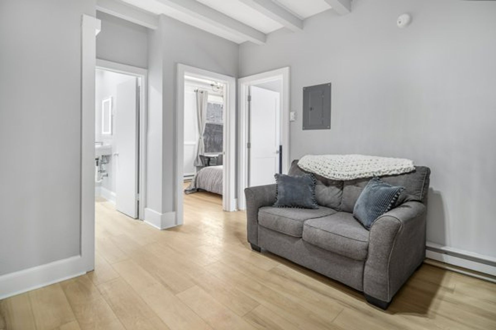 Each apartment comes fully furnished and features all new kitchens, upgraded bathrooms, new flooring and remodeled living and bedroom areas. Enjoy this home's classic charm blended with modern amenities like custom tile baths, LED vanity mirrors, smart lights and digital door access. The kitchens feature a full suite of new stainless steel appliances, wood cabinets, and quartz countertops. Common areas feature new furnishings including wall-mounted flat screen TVs and space for living and dining accordingly. Additional Furnishings include a couch, dining room table and chairs or kitchen counter seating, full size bed frame and mattress, desks and desk chair, and closet and dressers or large armoire in each bedroom.