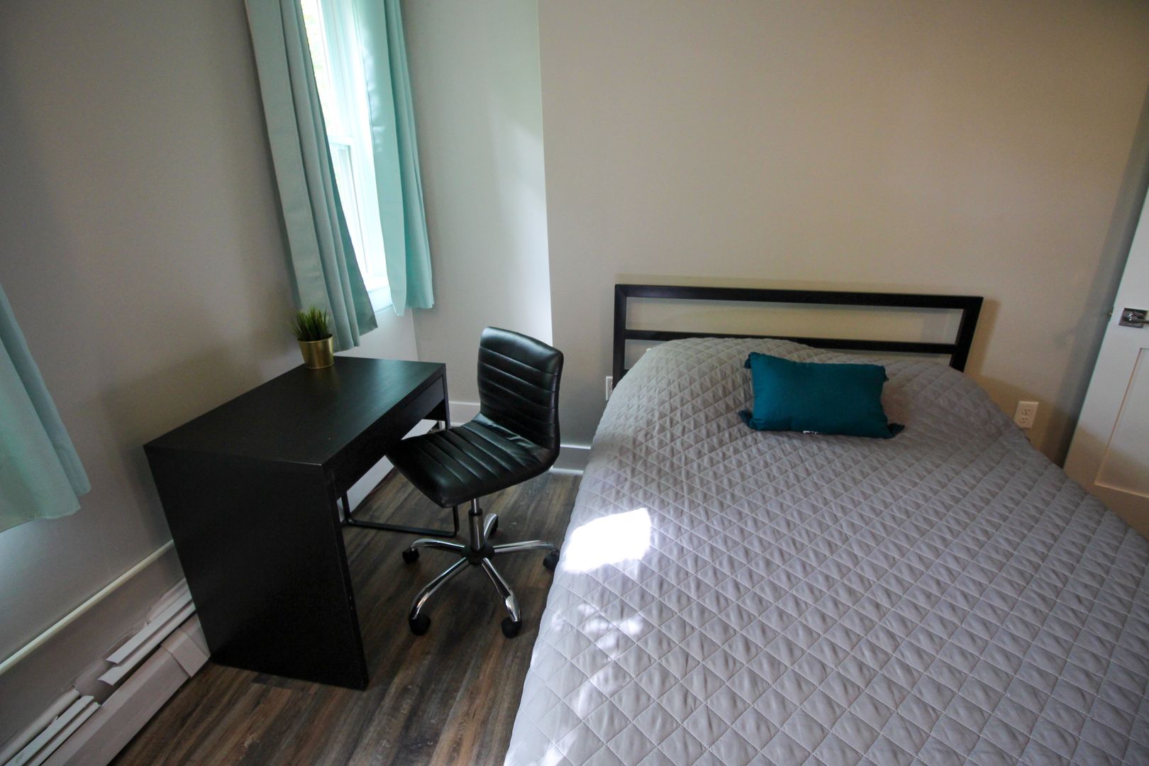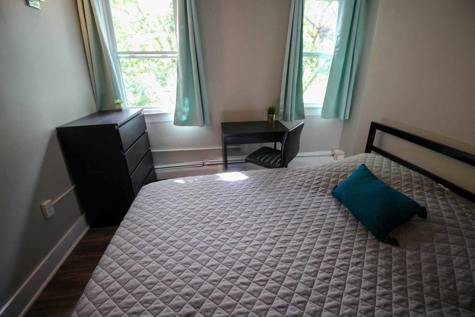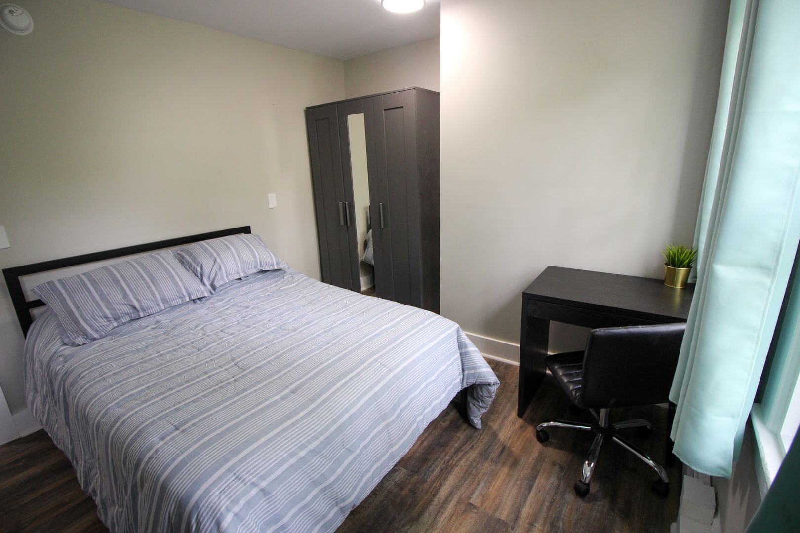 The home is available fully-furnished with a smart TV, couch, dining room table, and chairs. Beds, desks, and dressers are also provided at no extra cost.