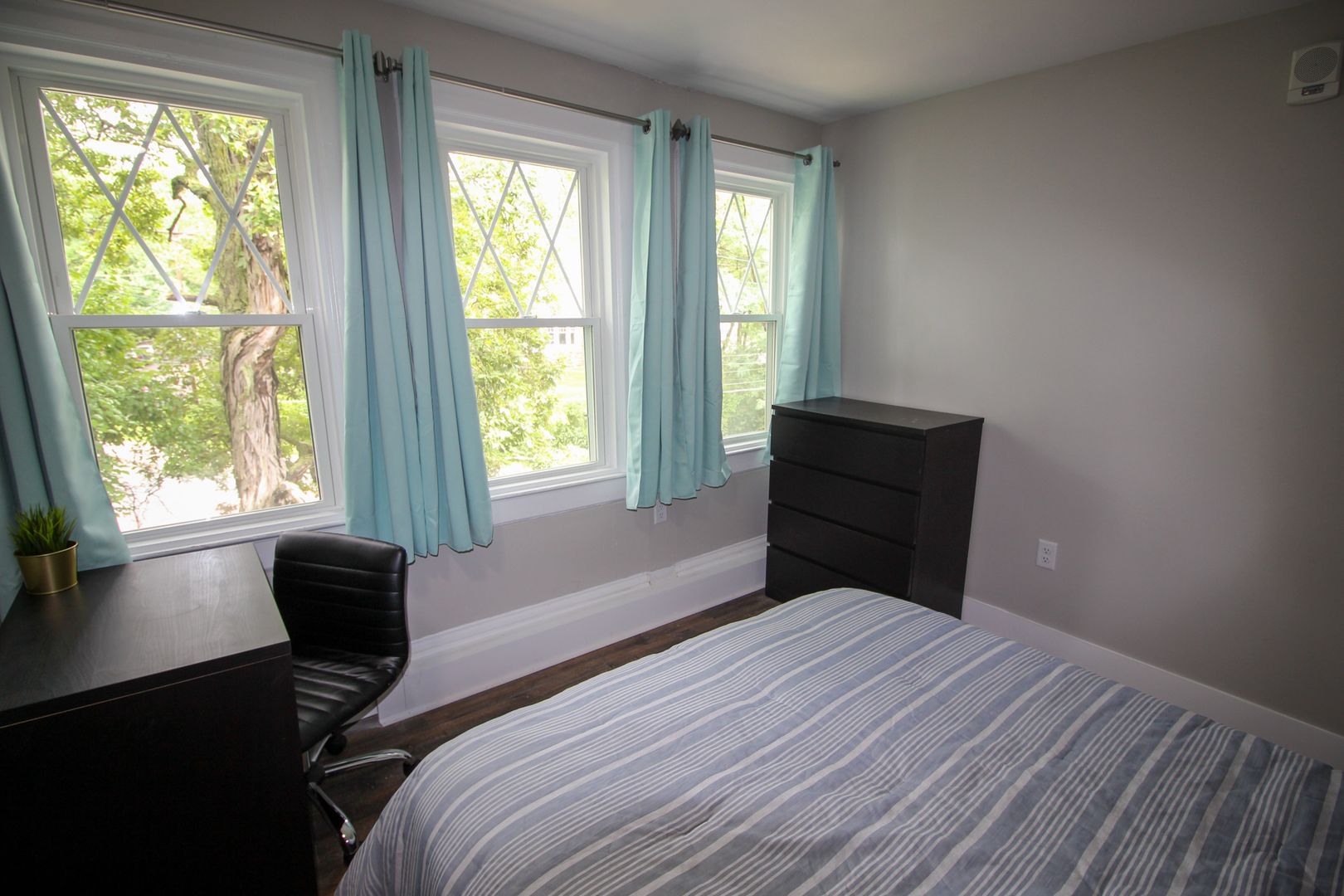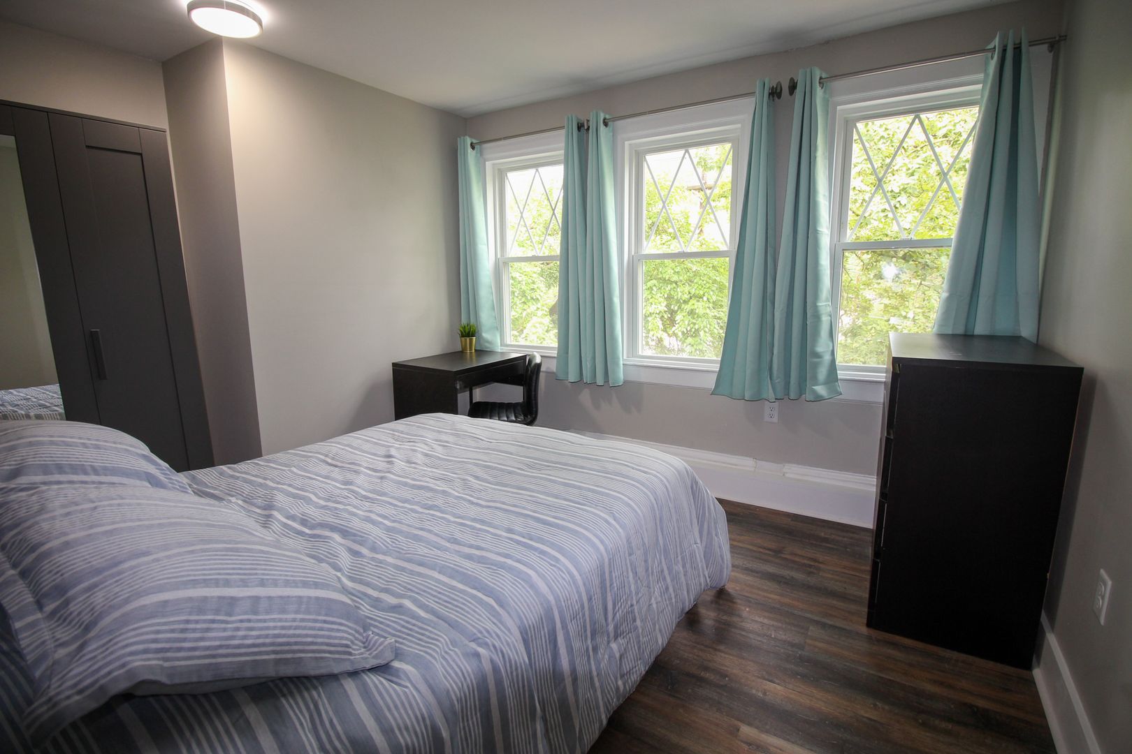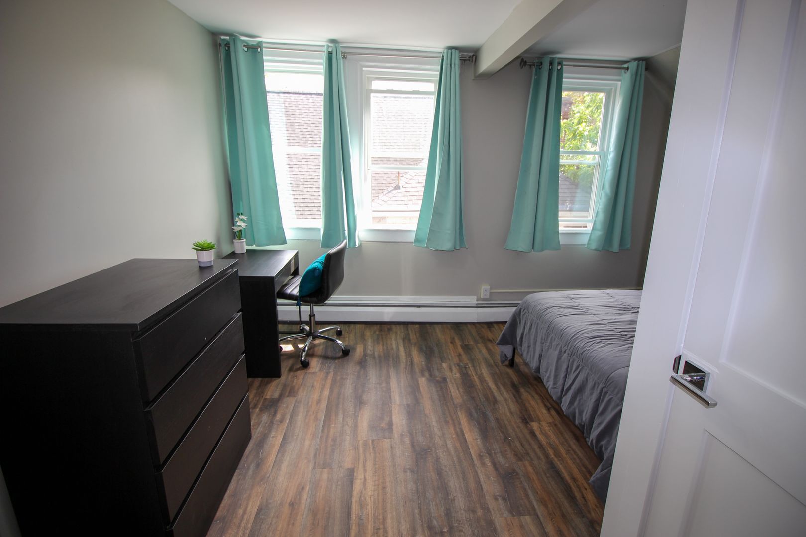The home is available fully-furnished with a smart TV, couch, dining room table, and chairs. Beds, desks, and dressers are also provided at no extra cost.