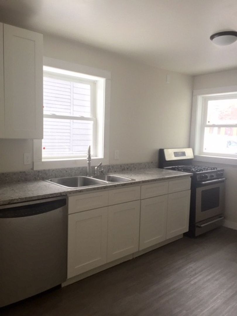 The rear unit is a two story open loft with one bath that features brand new quartz counters w/ white shaker style cabinets in the kitchen, stainless-steel appliances, stackable washer/dryer and a mix of brand new luxury vinyl tile and original to the house hardwood floors that have recently been refinished.