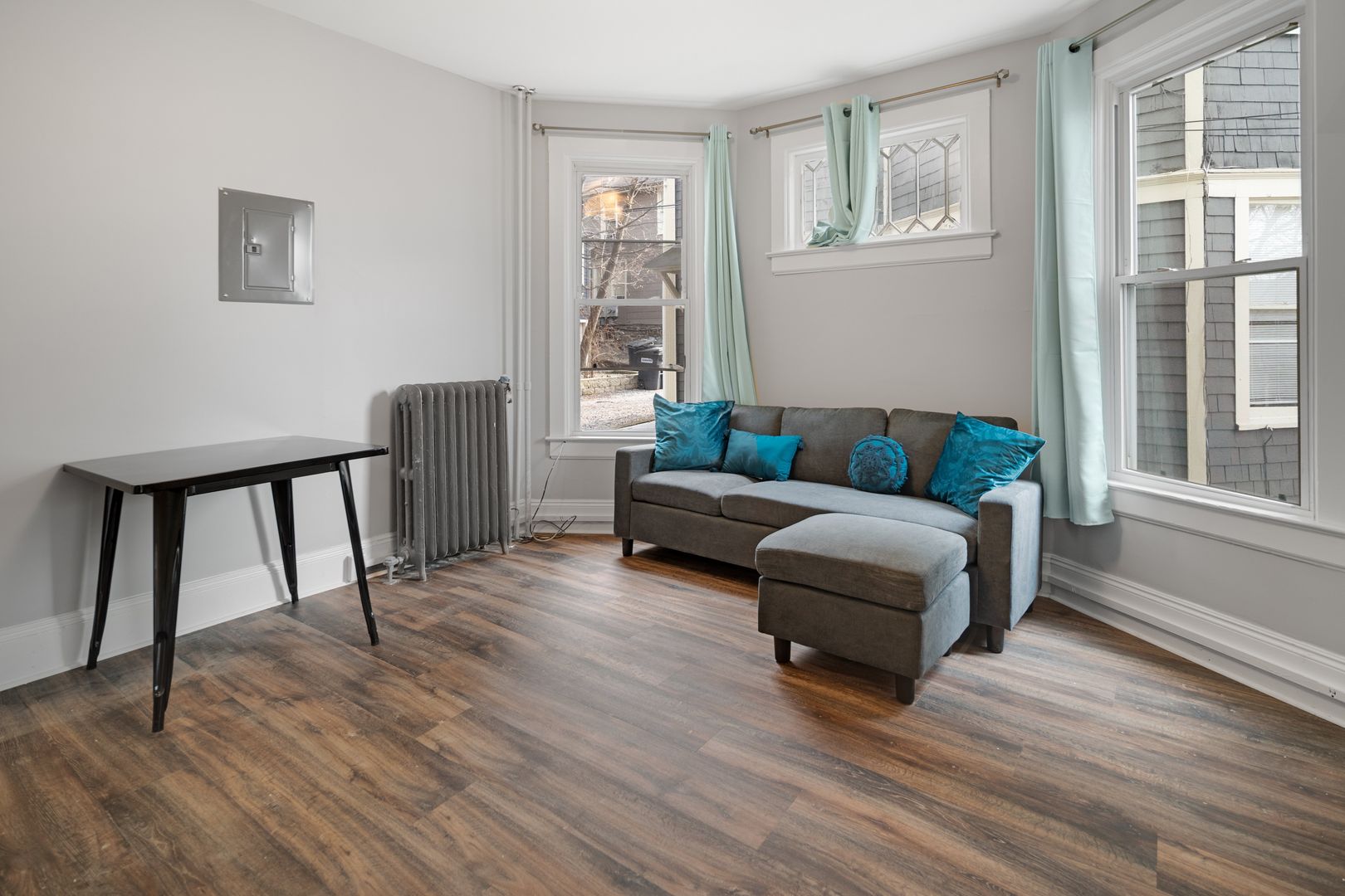Each apartment features beautiful hardwood floors and a large, bright, and sunny living room facing the street.