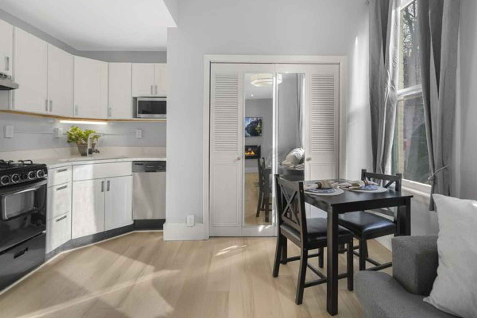 Each apartment comes fully furnished and features major upgrades throughout! Enjoy this home's classic charm blended with modern amenities like custom tile baths with glass shower surrounds, LED vanity mirrors, modern lighting and hardware and modern interior design. The kitchens feature a full suite of new stainless steel appliances (Fridge, Oven/Range, Dishwasher and Microwave), wood cabinets, and brand new, stunning quartz countertops. Common areas feature thoughtful furnishings including wall-mounted flat screen TVs and LED Fireplace. Additional furnishings include a couch, dining room table and chairs or kitchen counter seating.