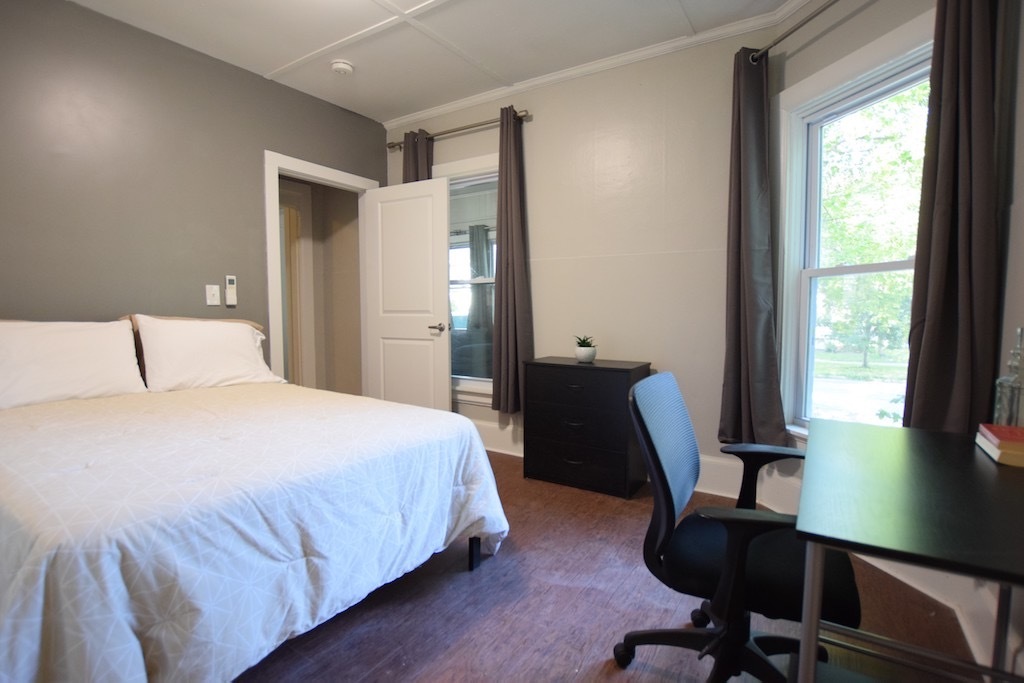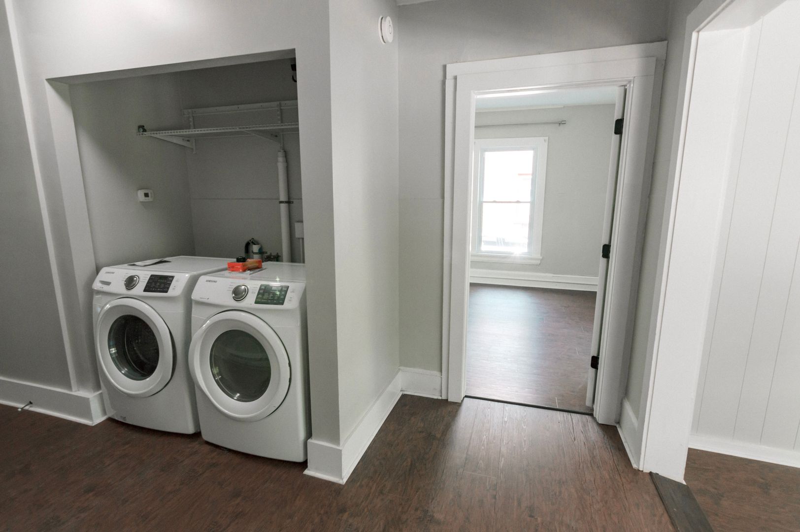 The unit is equipped with a front loading washer and dryer and fully furnished with a sectional couch, dining room seating, bar stools for the island, full beds, dressers, desks and desk chairs. Window treatments are also provided at no additional cost.