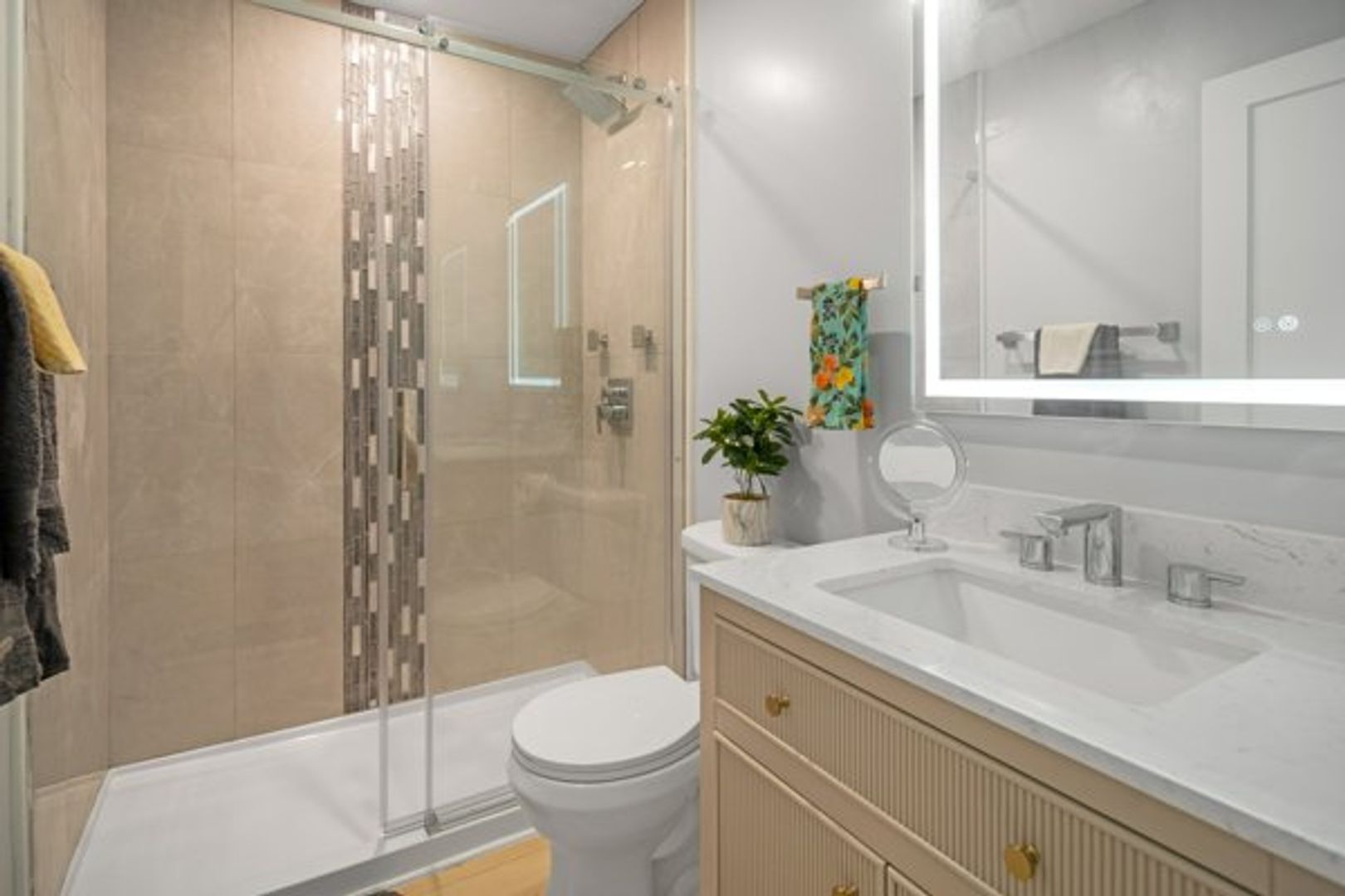 • Upgraded bathrooms with custom tilework, LED vanity mirrors, and modern fixtures