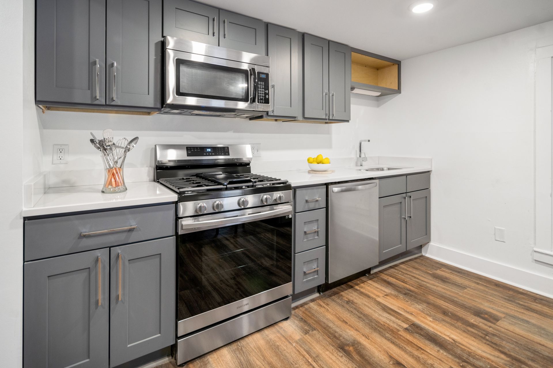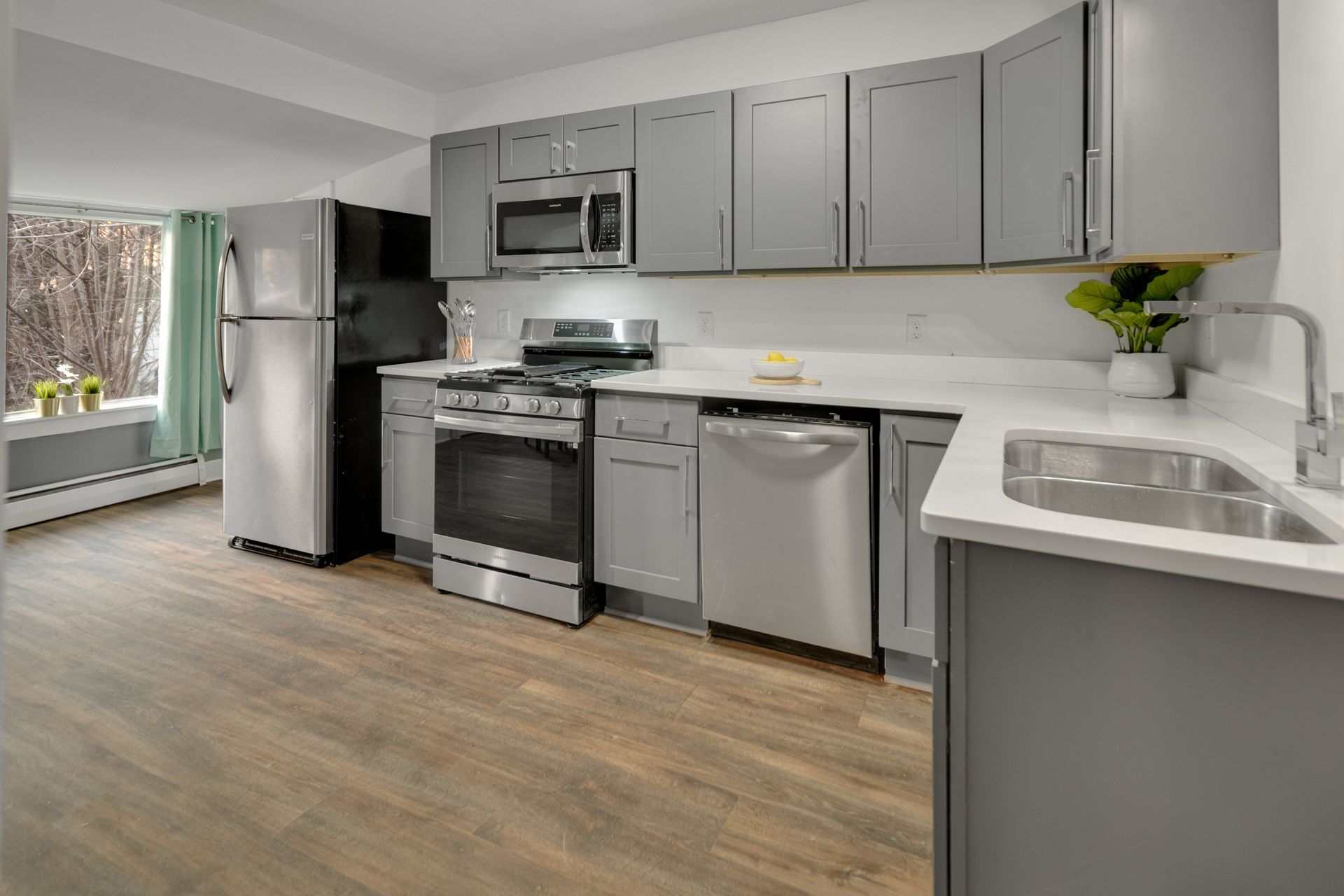 Major renovations included new kitchen cabinets, modern light fixtures, quartz counter tops, LVT flooring, and custom tiled bathrooms.