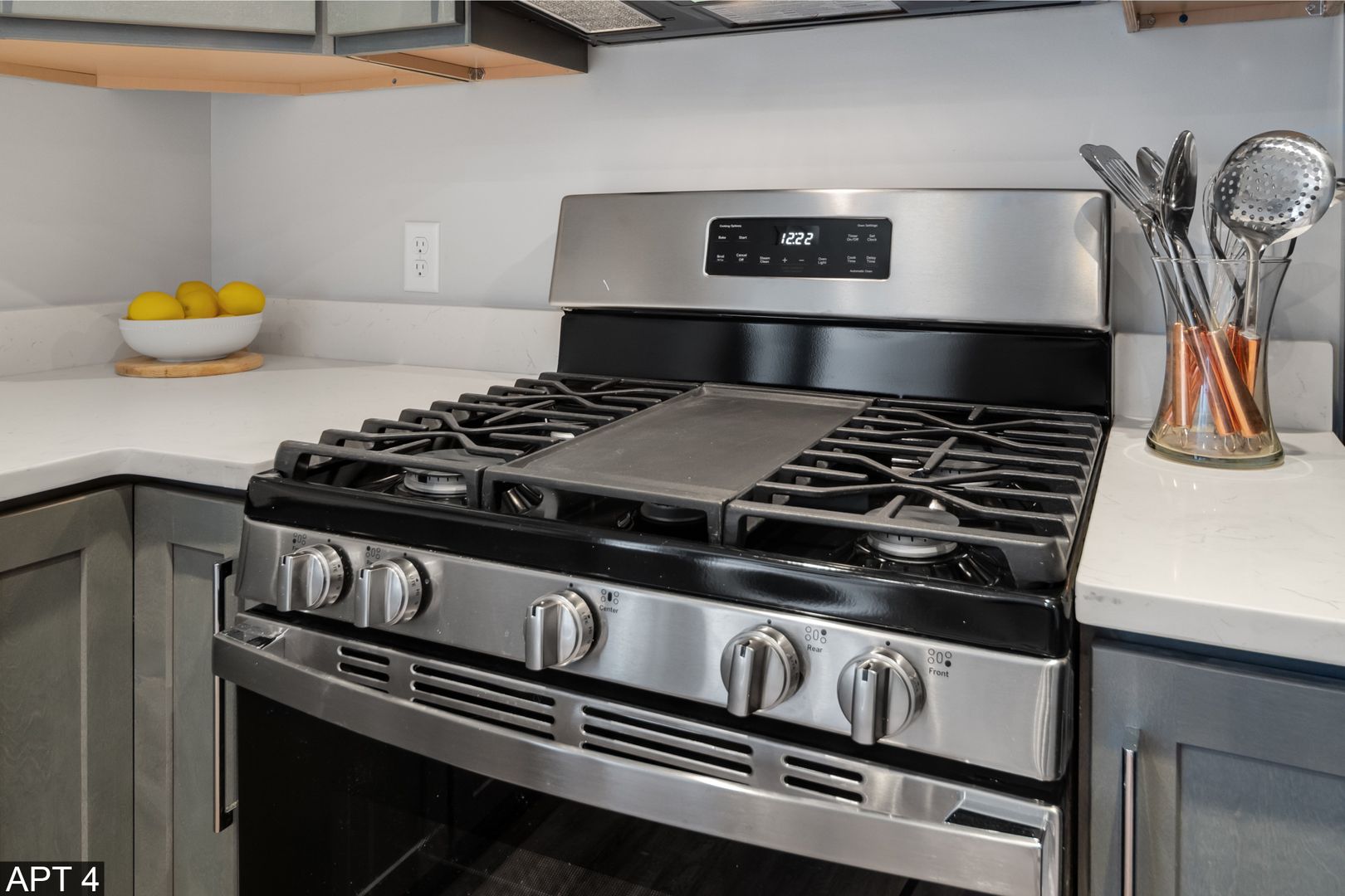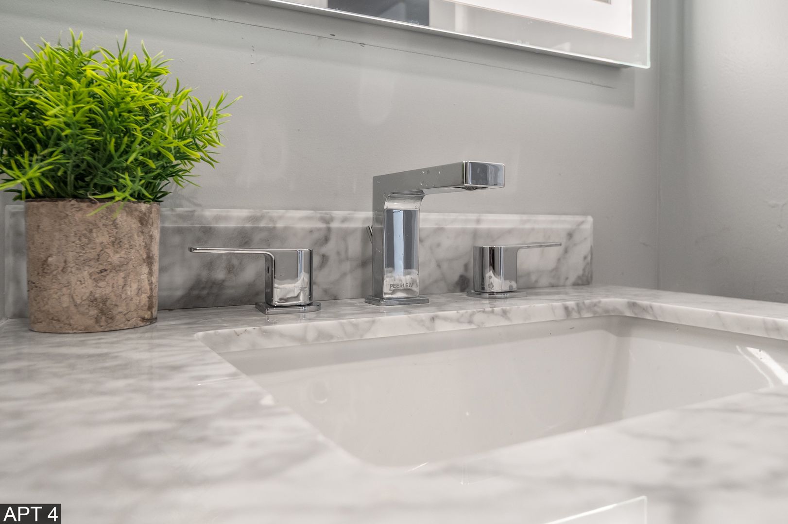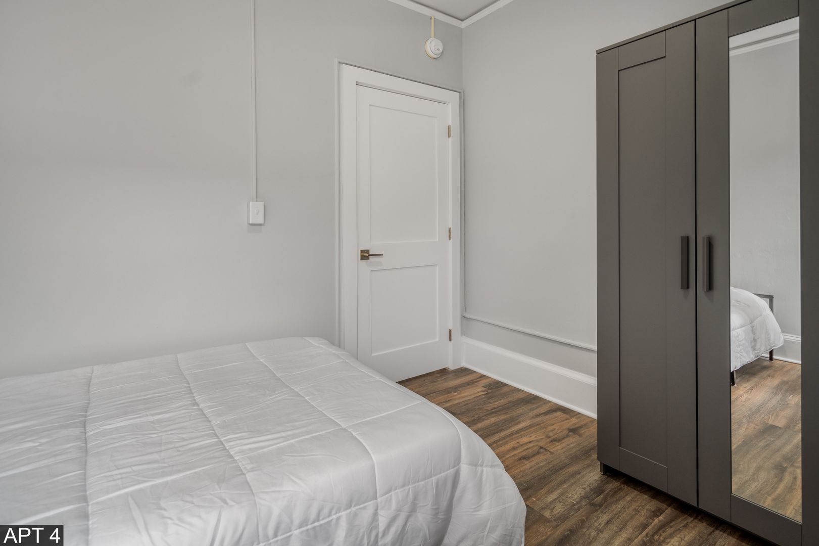 This beautiful and brand new 4BR/2BA unit in the heart of Collegetown was just renovated with amazing features like quartz countertops, brass nickel finishes, laminate flooring, shower sprayers, LED touchscreen mirrors with defoggers, brand new stainless steel kitchen appliances and full size washer and dryers in each unit! Fully furnished bedrooms each include full size bed frame and mattress, armoire and/or dresser, and desk with chair. Kitchen table with seating for four, couch and chair, and wall-mounted smart TVs in the common area!!