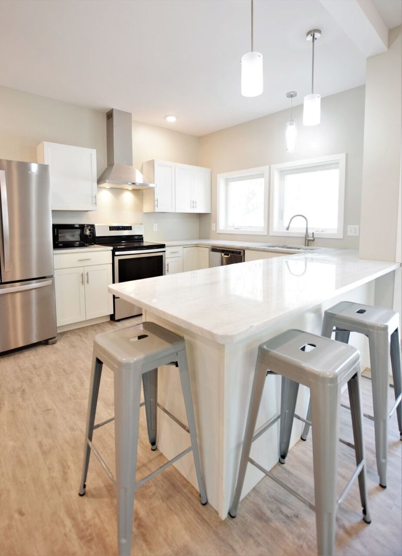 This home is an up/down duplex with three bedrooms, two full bathrooms on each floor and was newly built in 2018. Each unit contains granite counters, stainless steel appliances, custom tiled bathroom, spacious bedrooms with closets and lots of natural light. There is luxury vinyl tile throughout the units and contemporary finishes and fixtures.