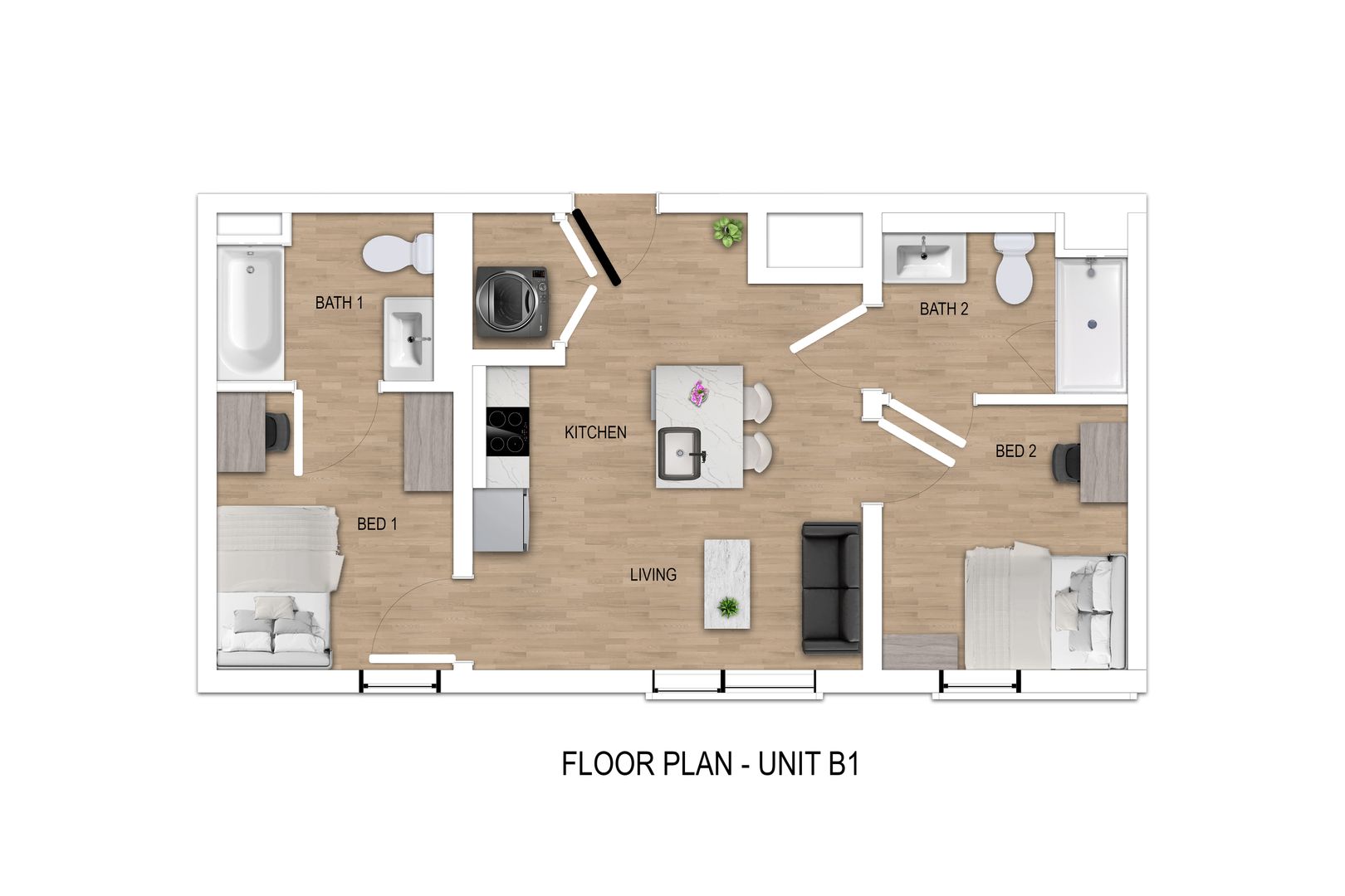 Every apartment is fully furnished and features stainless steel appliances, an in-unit washer and dryer, and floor to ceiling windows that flood your space with natural light.