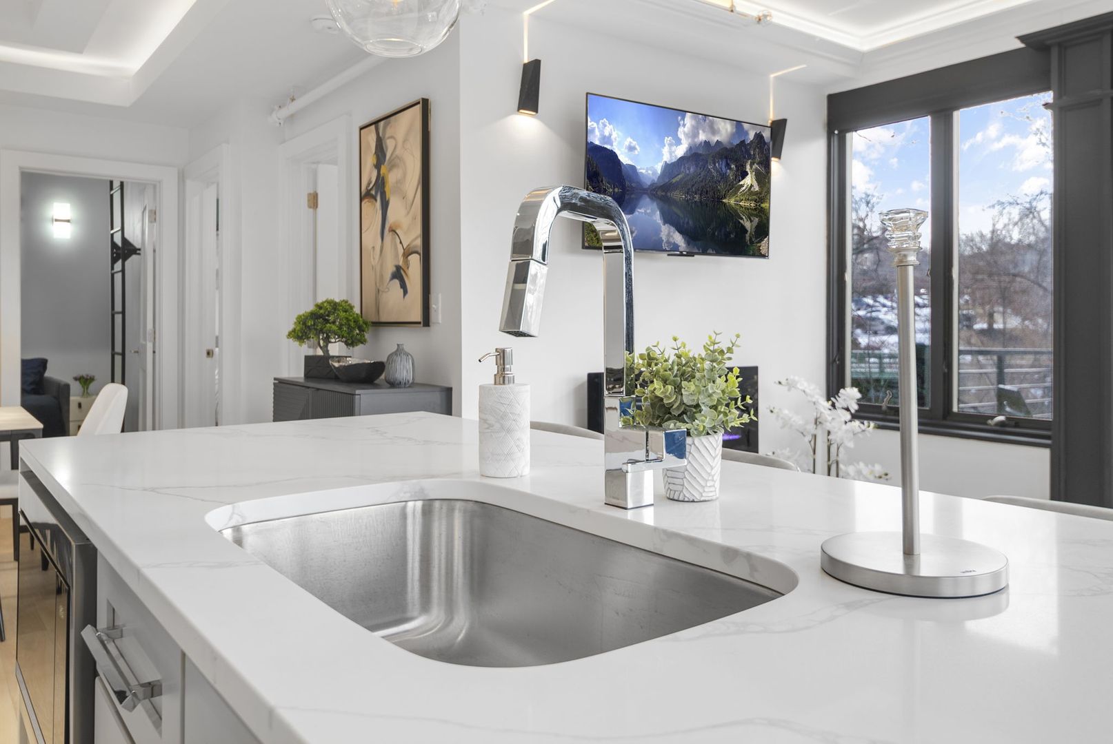 The apartment is equipped with an integrated iPad-controlled lighting system and remote-operated privacy curtains for ultimate convenience and ambiance.