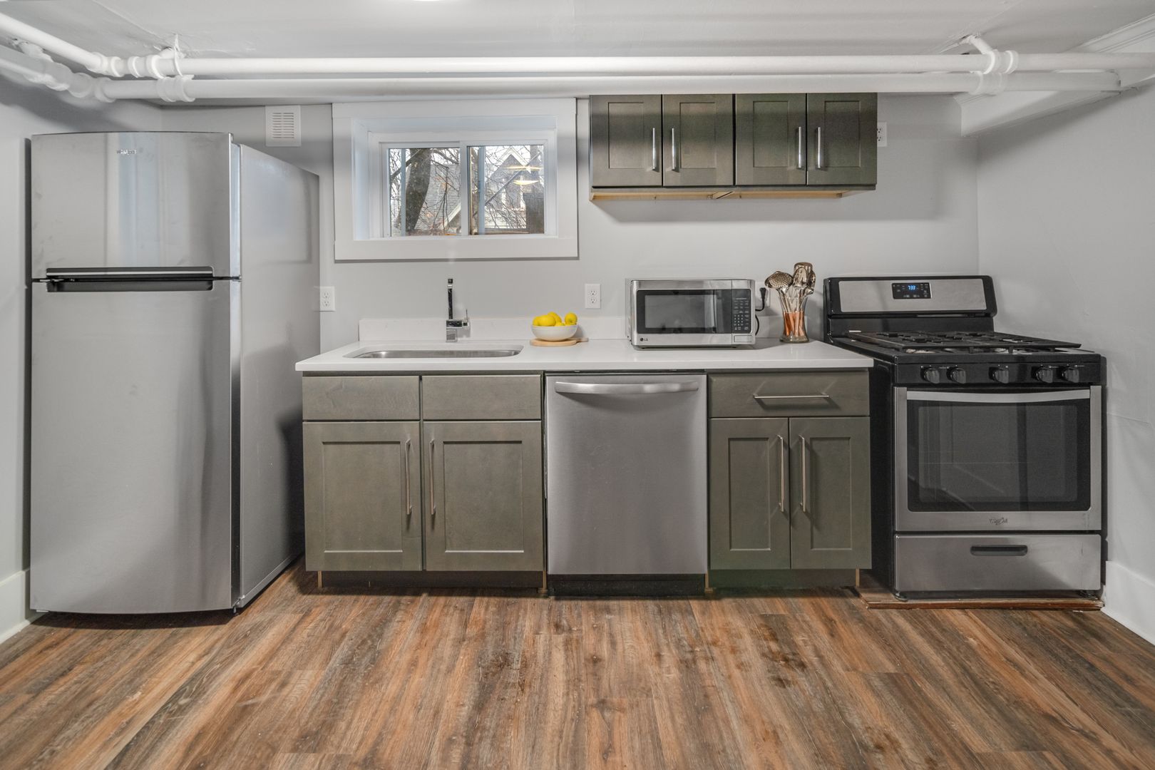 Rent includes water, sewer, snow removal, and lawn care. Separately, tenants pay for gas, electric, and internet.