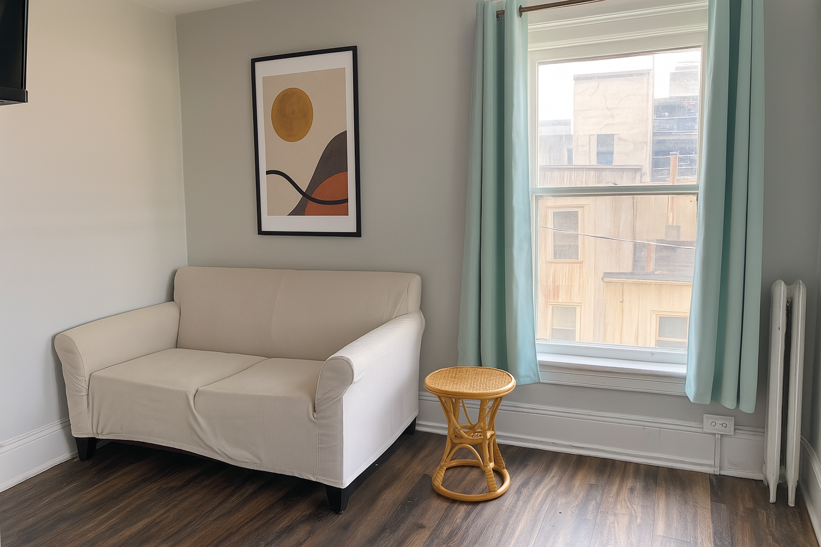 This bright and cozy studio apartment offers the perfect blend of comfort and convenience. Featuring an open-concept layout, this unit includes a well-equipped kitchenette, bathroom, and ample natural light throughout.