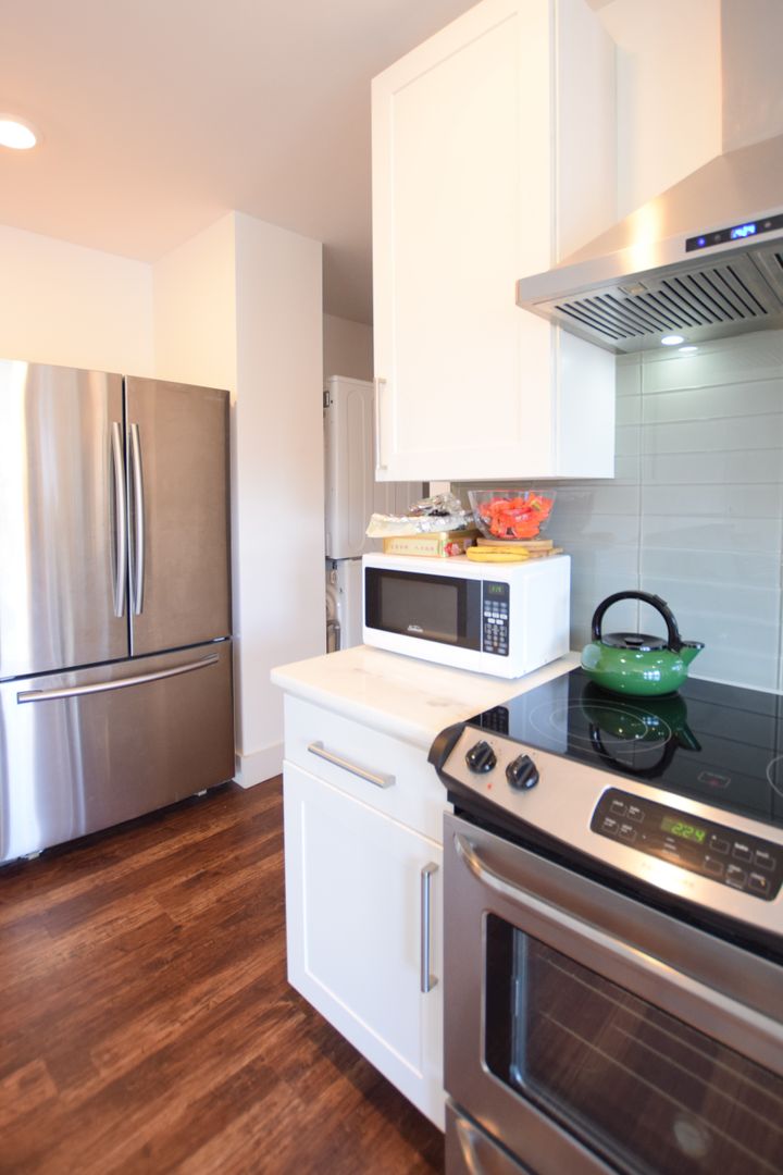 This home features many beautiful amenities such as granite counter tops, stainless steel appliances, dishwasher, washer and dryer in unit. A four car garage is located under the building with five additional parking spots in the driveway.