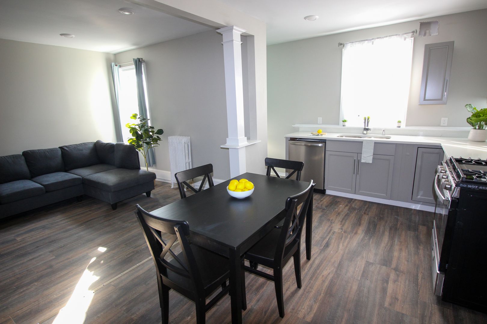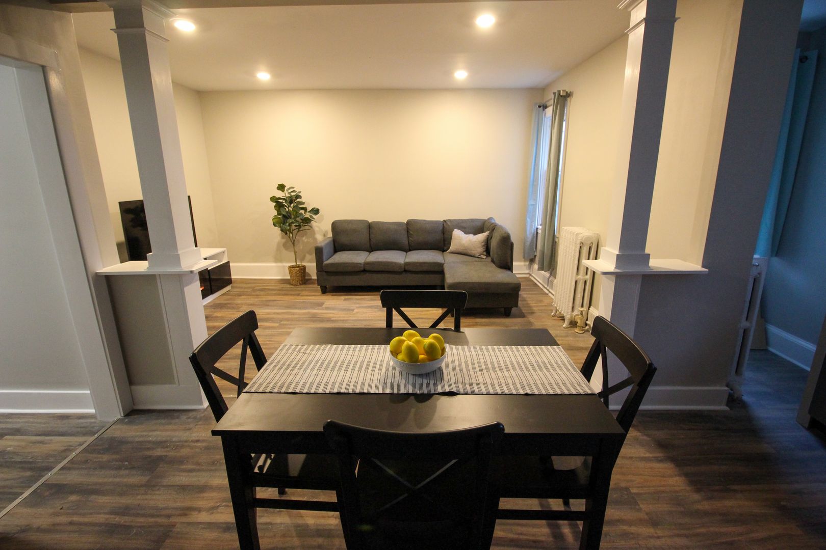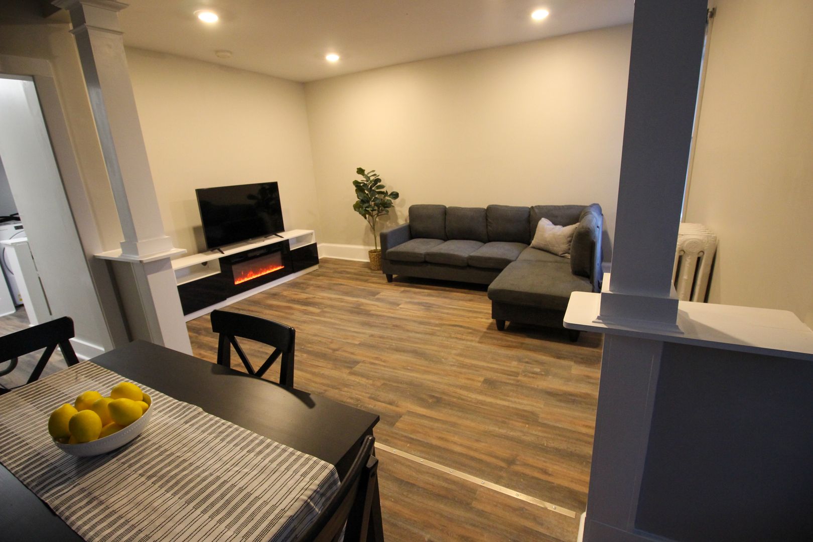 This 3-bedroom apartment is a beautiful unit in college town with major renovations including all new flooring, furnishings, and contemporary finishes. Enjoy modern amenities like in-unit laundry and stylish new lighting fixtures. The updated kitchen features quartz countertops and new stainless steel appliances including a brand new dishwasher. The bathroom has a new vanity, custom tiling, and touch-activated LED mirror.