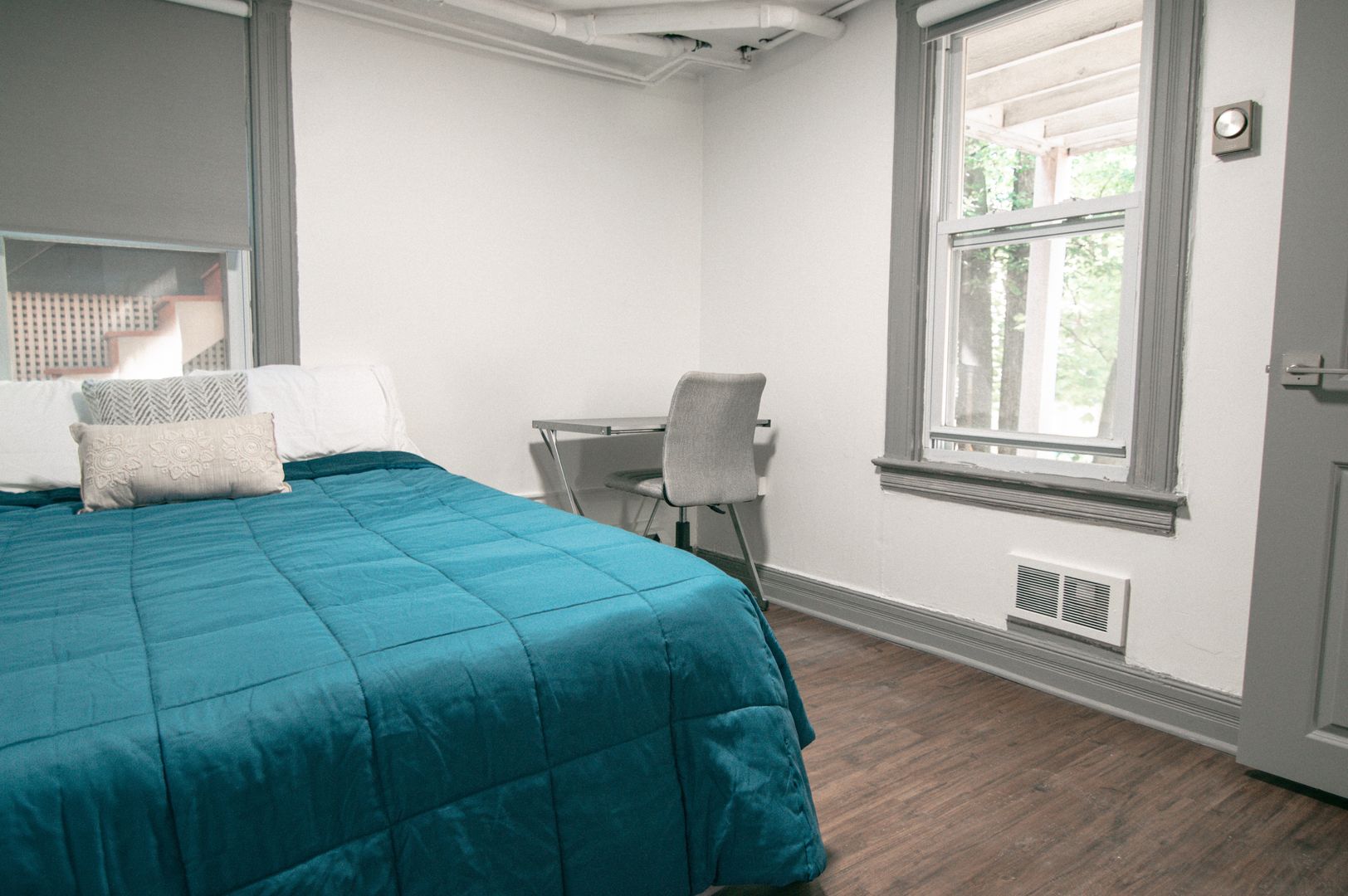 This 2 bedroom apartment was renovated in the summer of 2020. The updated kitchen features brand new stainless steel appliances, granite countertops, and freshly painted cabinets. The unit is available furnished with a couch, beds, dressers, desks, and a kitchen table and chairs. There is luxury vinyl tiling throughout the apartment. A new bathtub, custom tiling, and a touch-activated LED mirror have been installed in the bathroom.