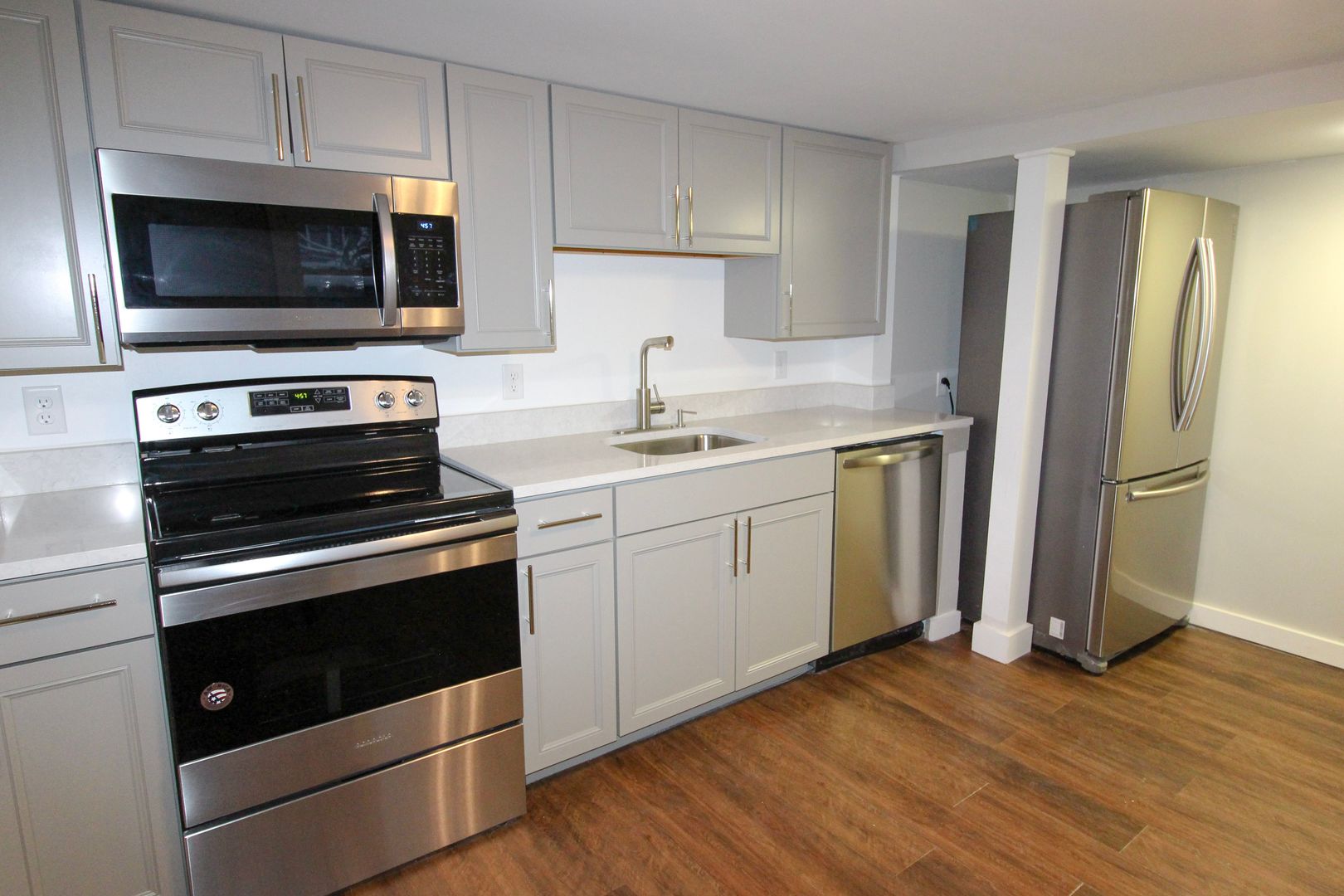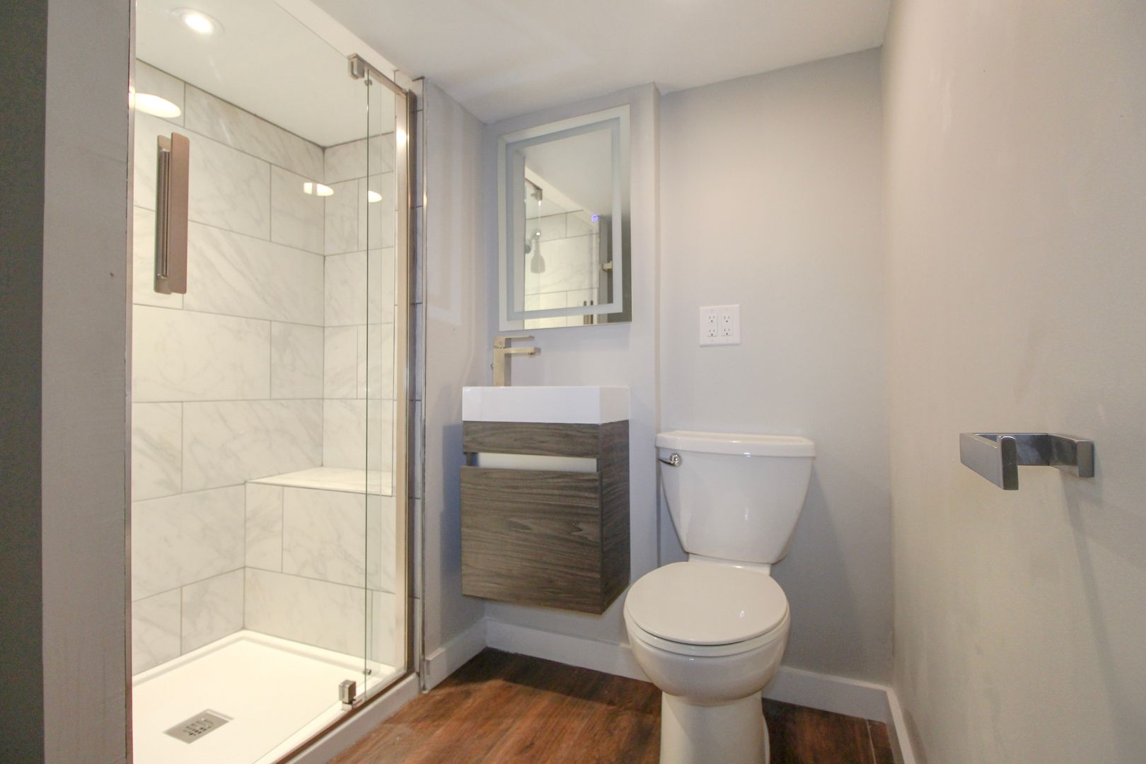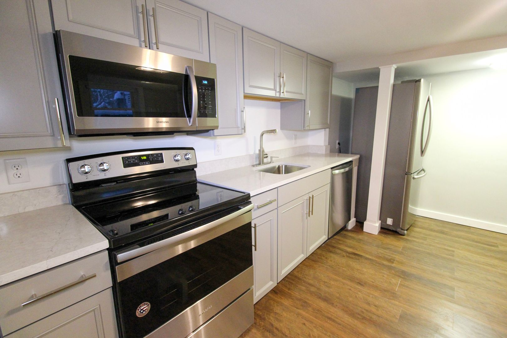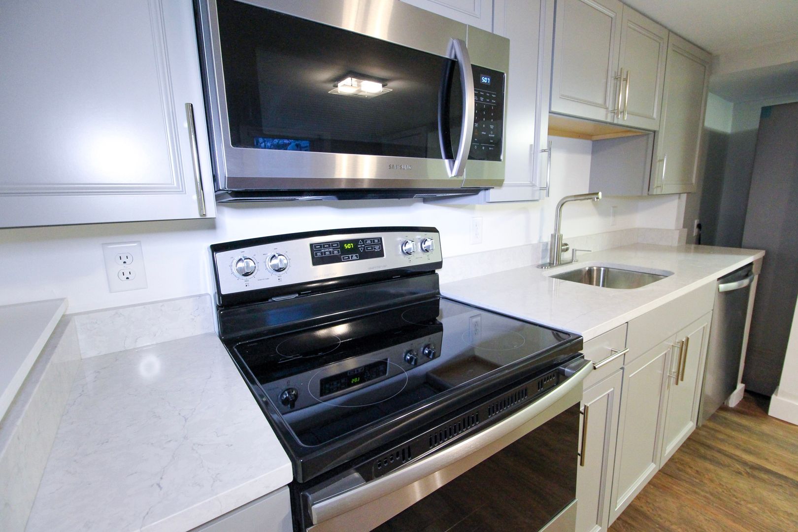 This spacious 1-bedroom apartment features a large eat-in kitchen. Major renovations included all new drywall, luxury vinyl flooring, and updated appliances and lighting fixtures. The new kitchen offers gorgeous marbled quartz countertops, contemporary stainless steel appliances, and brushed nickel fixtures. The bathroom has a tiled shower, a new vanity, and a touch-activated LED mirror.