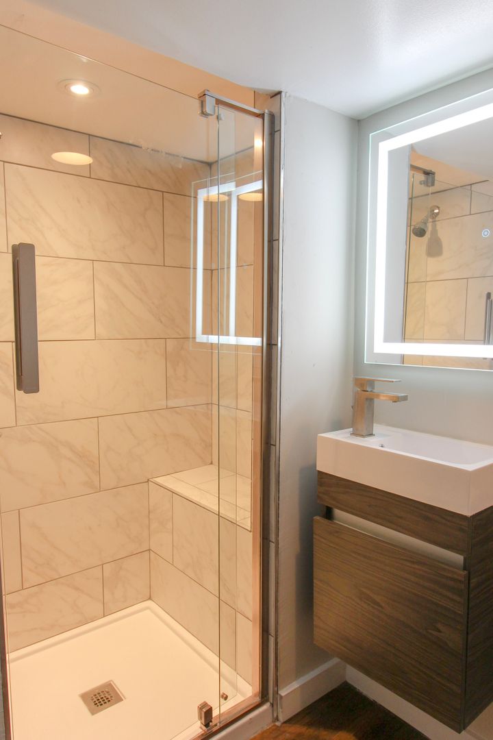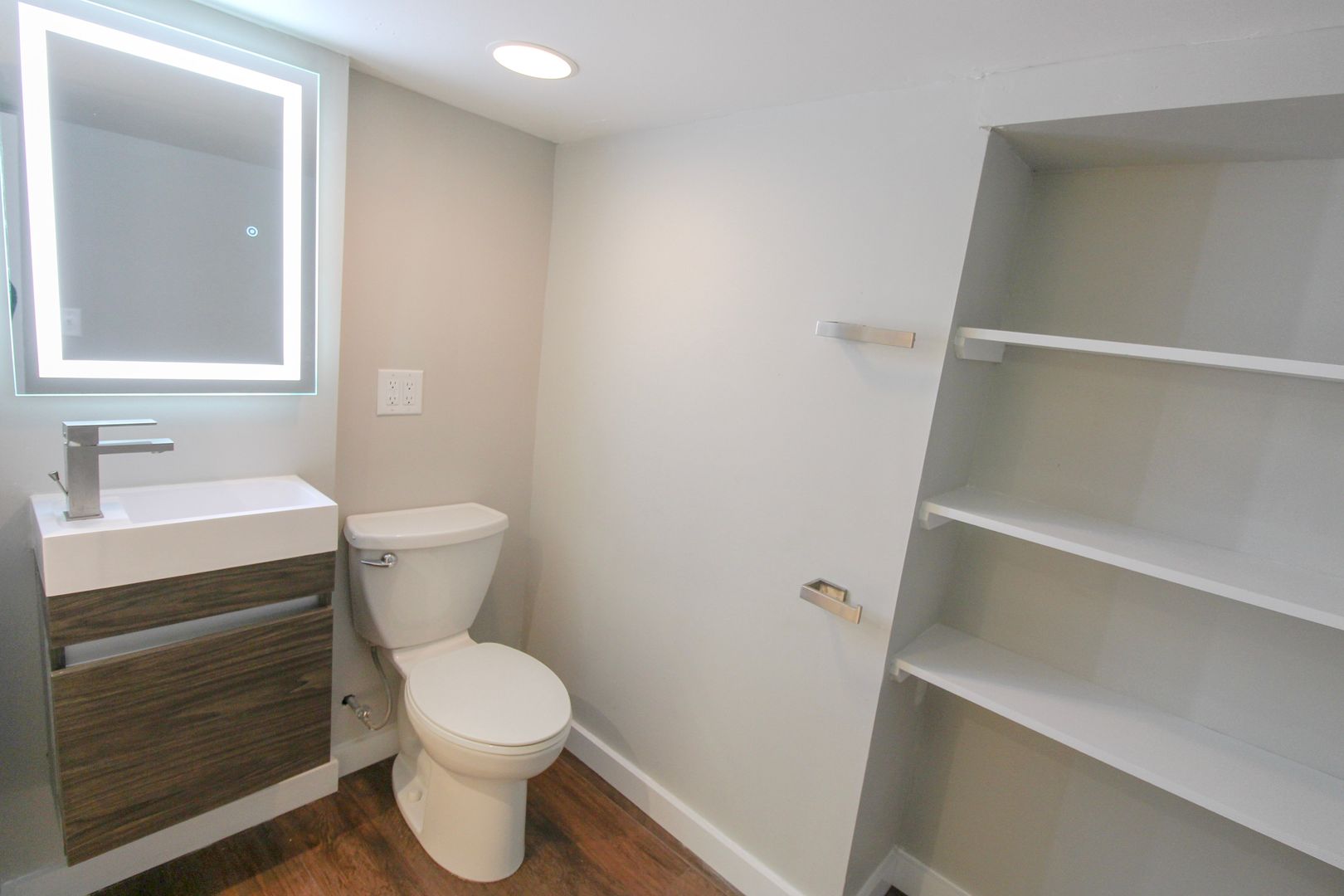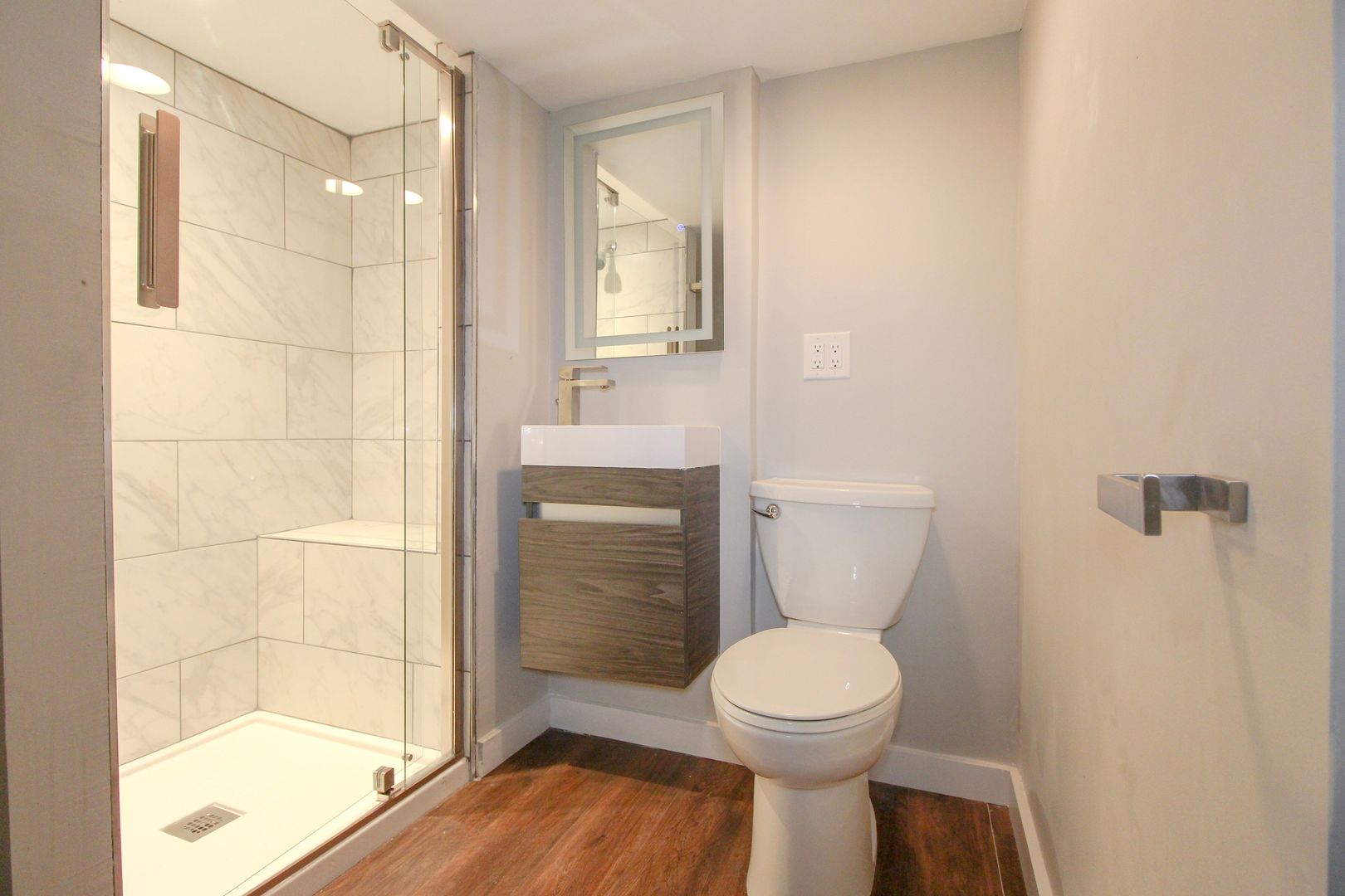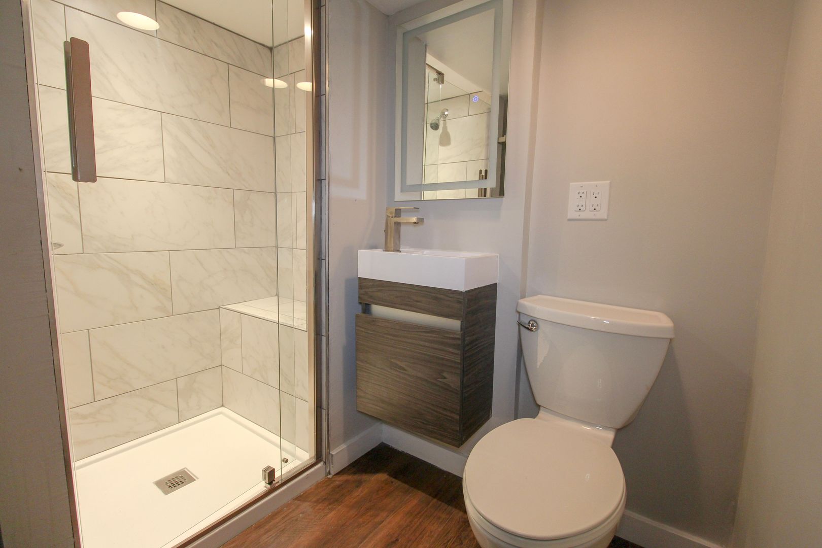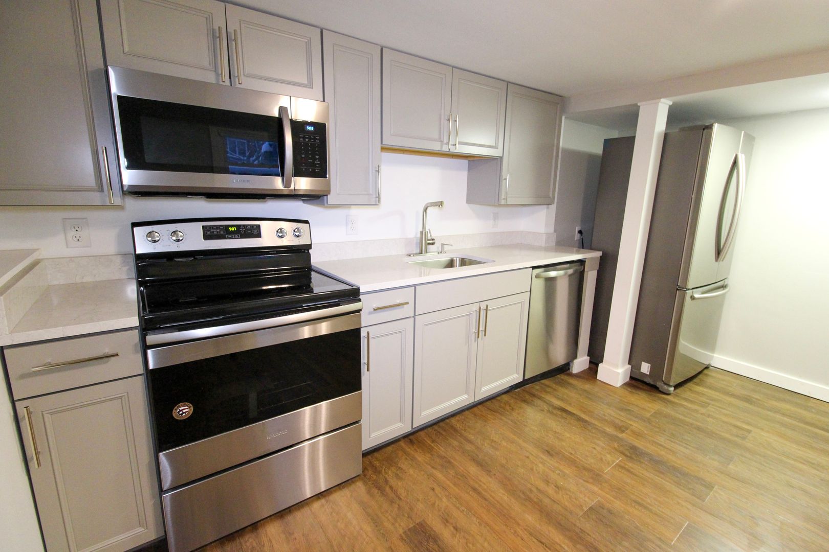 This spacious 1-bedroom apartment features a large eat-in kitchen. Major renovations included all new drywall, luxury vinyl flooring, and updated appliances and lighting fixtures. The new kitchen offers gorgeous marbled quartz countertops, contemporary stainless steel appliances, and brushed nickel fixtures. The bathroom has a tiled shower, a new vanity, and a touch-activated LED mirror.