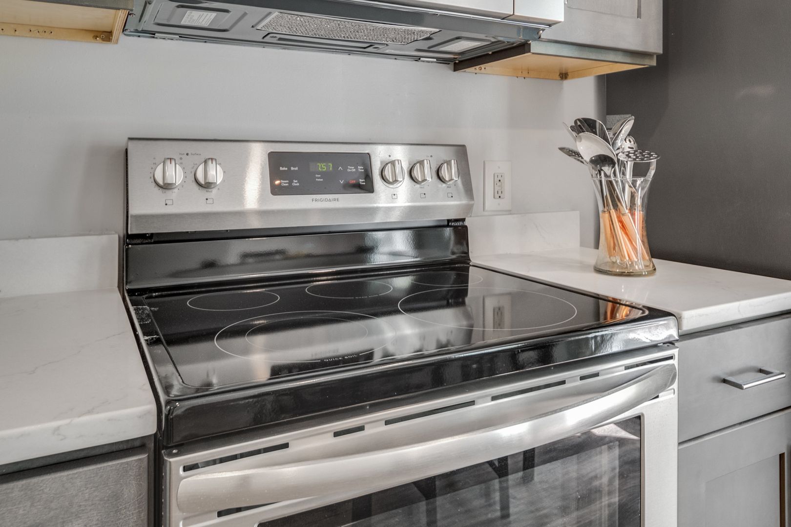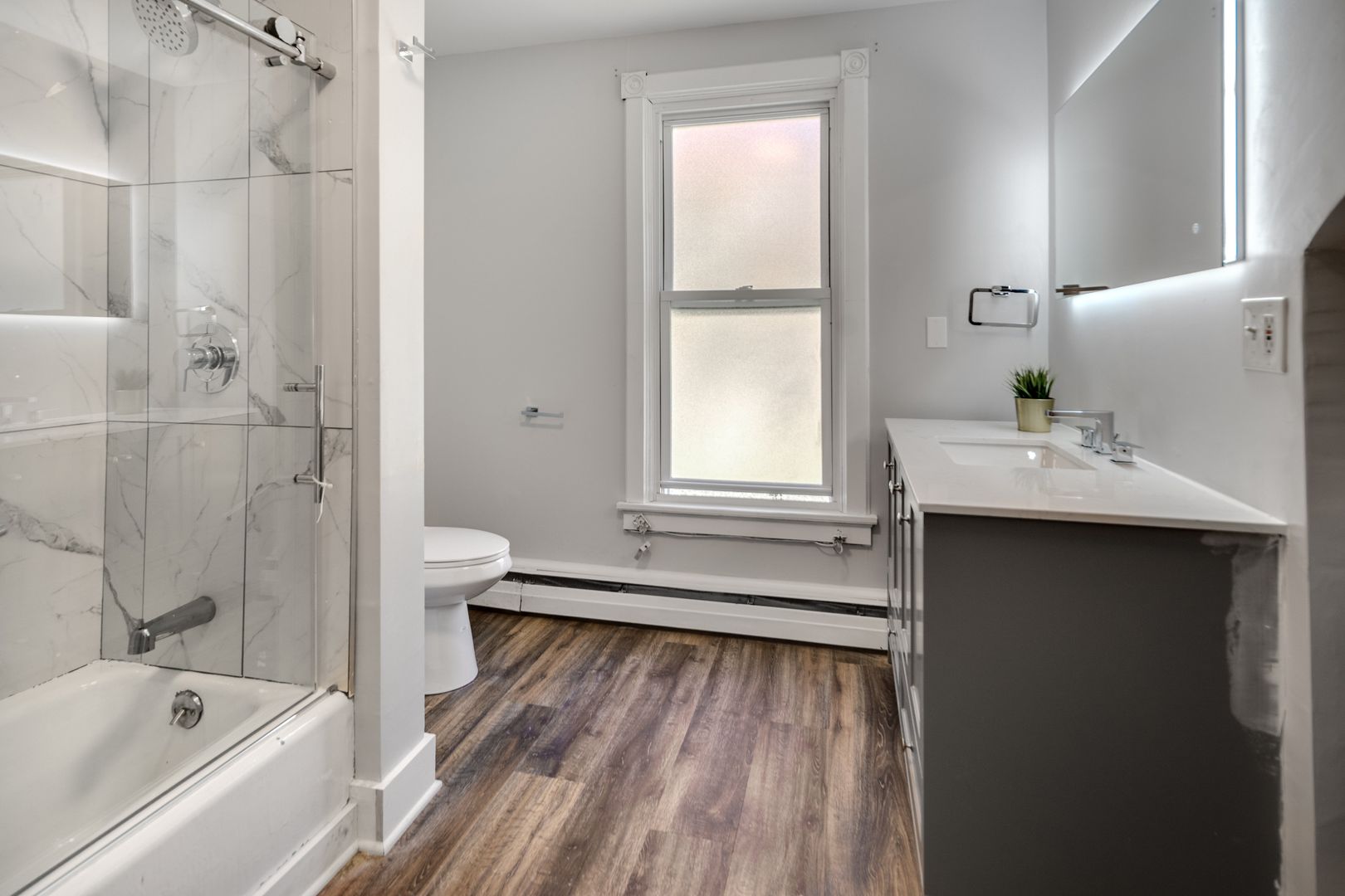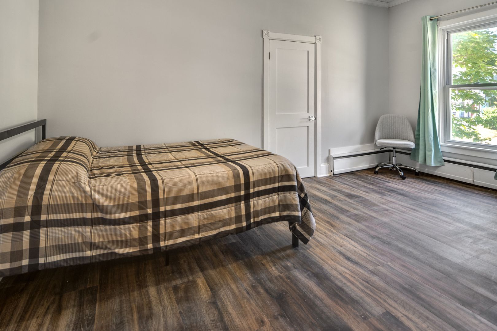 This 5 bedroom apartment was remodeled in the summer of 2022. Renovations include all new flooring and contemporary finishes. Enjoy this home's classic charm with modern amenities like in-unit laundry and stylish new lighting fixtures. The updated kitchen now features quartz countertops and new stainless steel appliances - fridge, stove, and dishwasher. Both full bathrooms have brand new vanities and tiling.