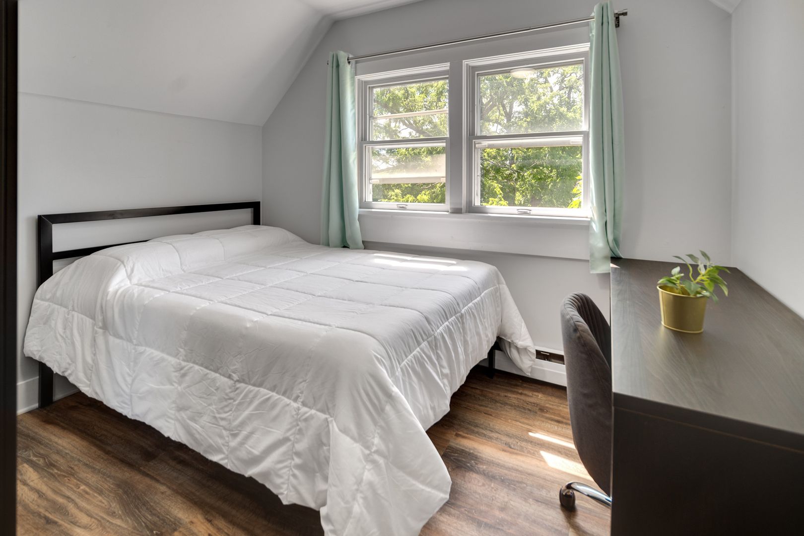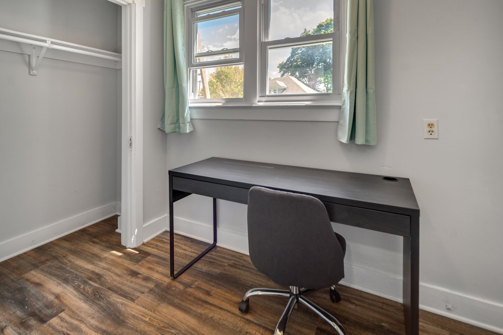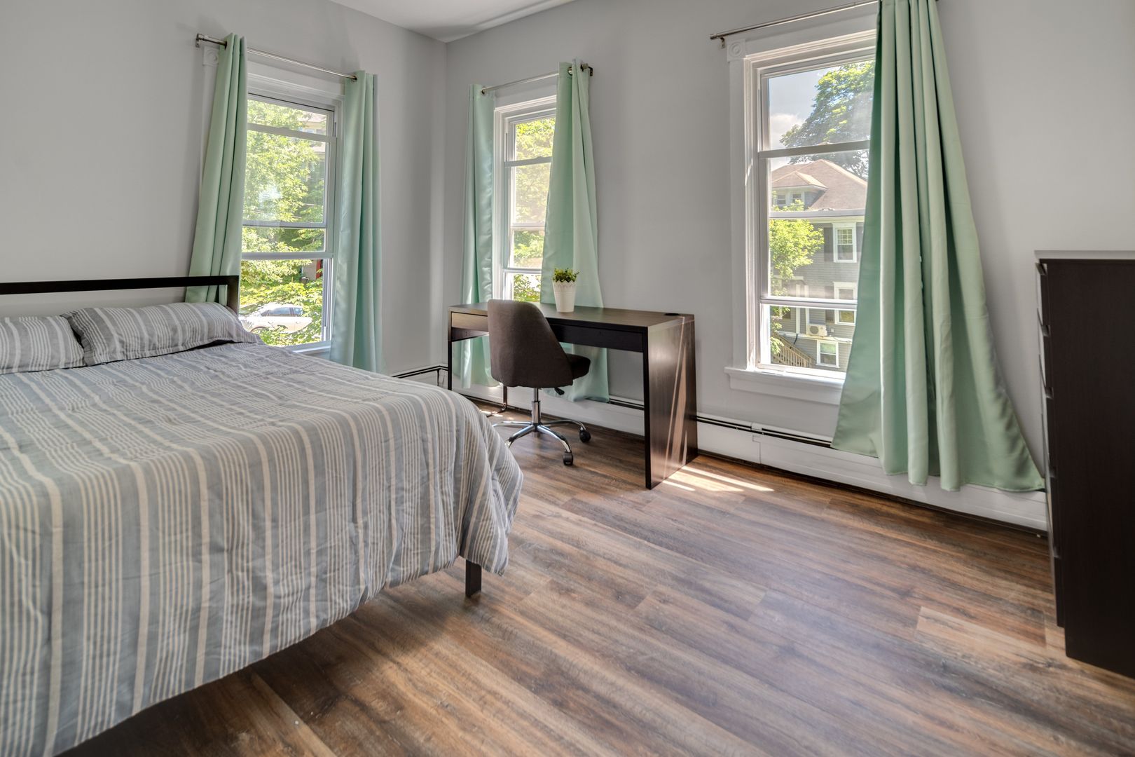 The home is available fully-furnished with a couch, kitchen table, and chairs. Beds, desks, and dressers are also provided at no extra cost. Wall mounted television and LED fireplace are also included!