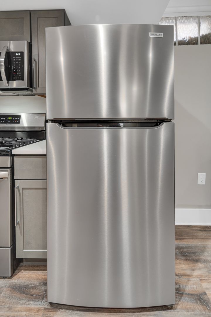 A mudroom with in-unit laundry is conveniently located right outside the kitchen door, allowing for easy access without sacrificing interior space. Every element of this home is designed for efficiency, convenience, and comfort.