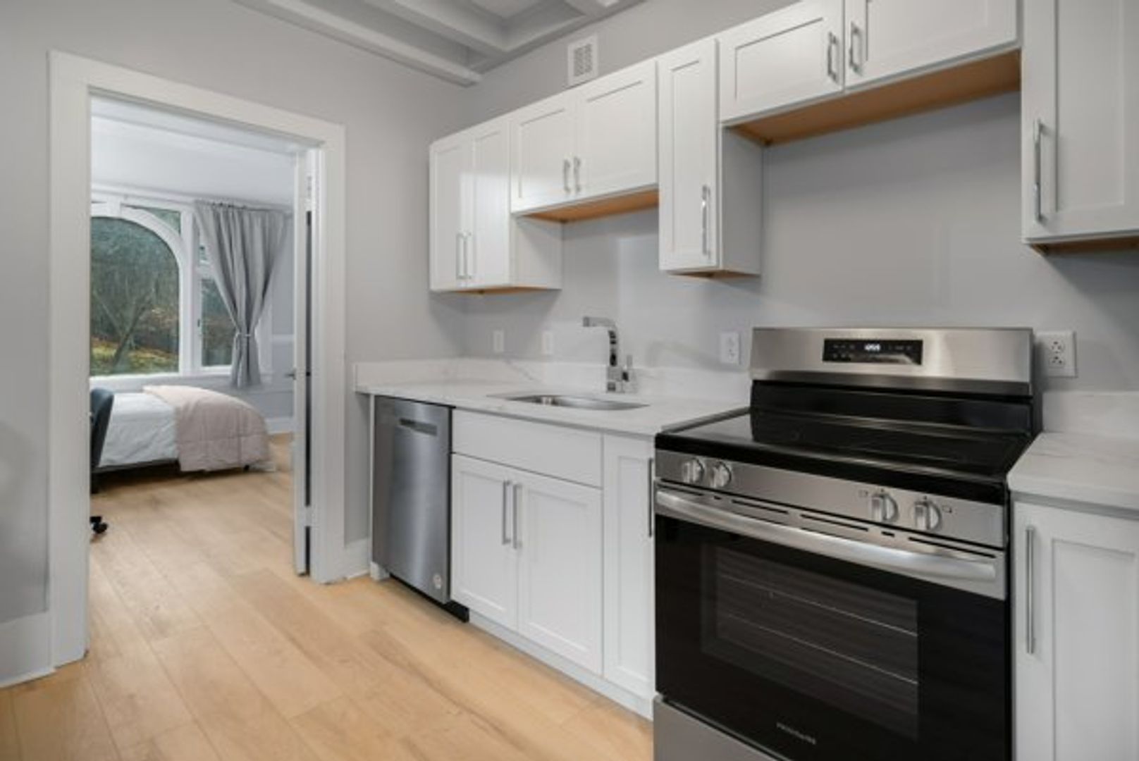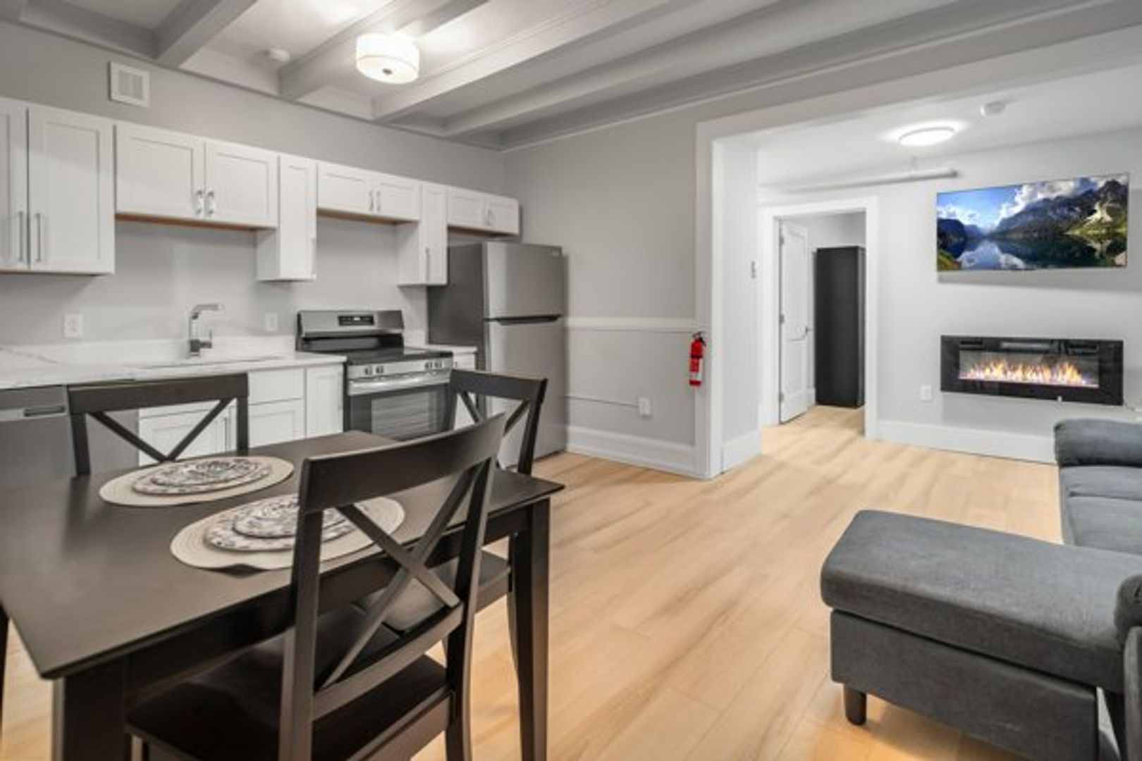 Each apartment comes fully furnished and features all new kitchens, upgraded bathrooms, new flooring and remodeled living and bedroom areas. Enjoy this home's classic charm blended with modern amenities like custom tile baths, LED vanity mirrors, smart lights and digital door access. The kitchens feature a full suite of new stainless steel appliances, wood cabinets, and quartz countertops. Common areas feature new furnishings including wall-mounted flat screen TVs and space for living and dining accordingly. Additional Furnishings include a couch, dining room table and chairs or kitchen counter seating, full size bed frame and mattress, desks and desk chair, and closet and dressers or large armoire in each bedroom.