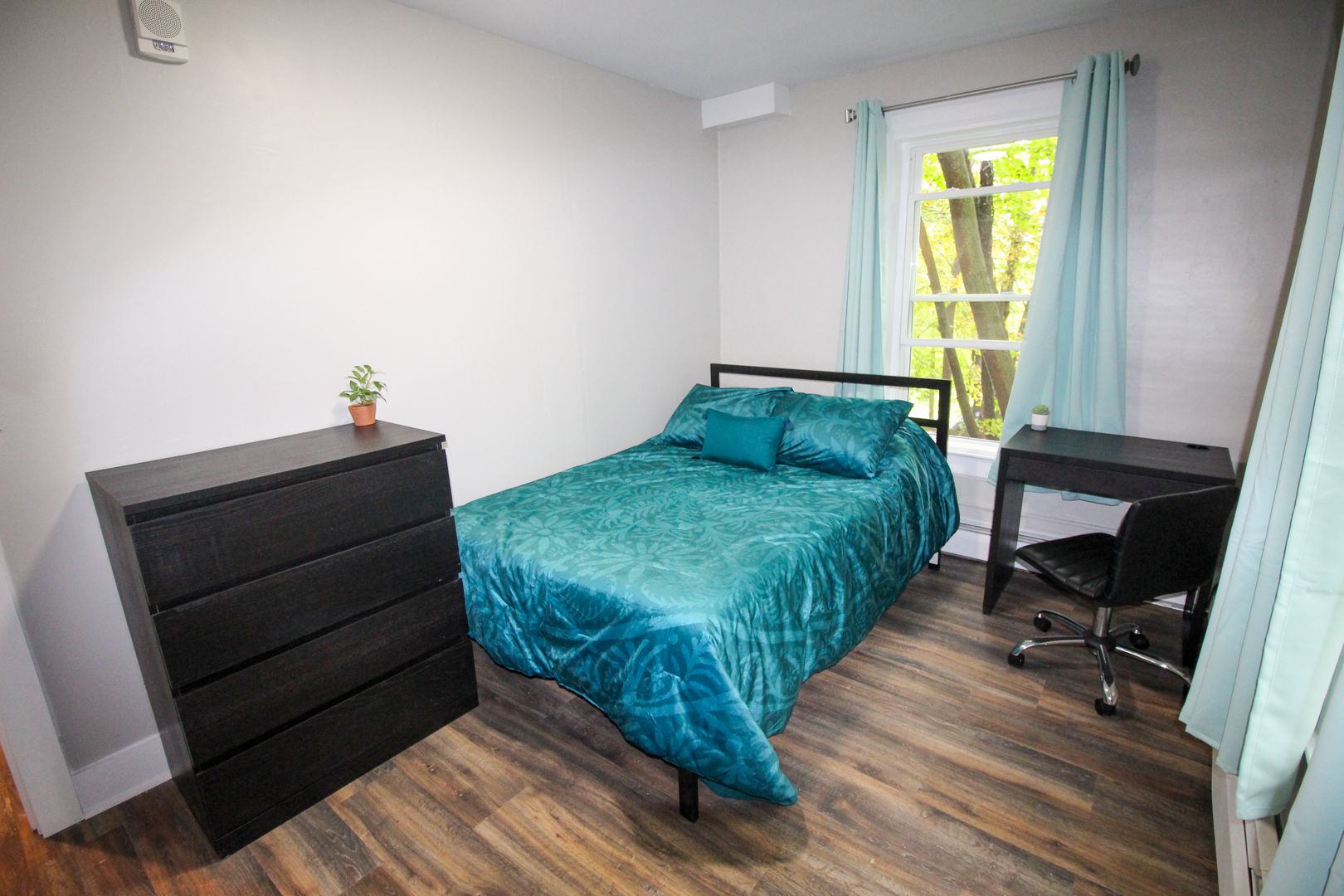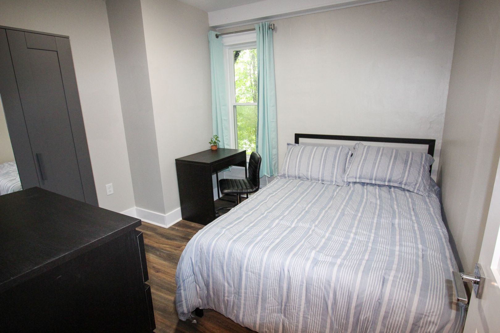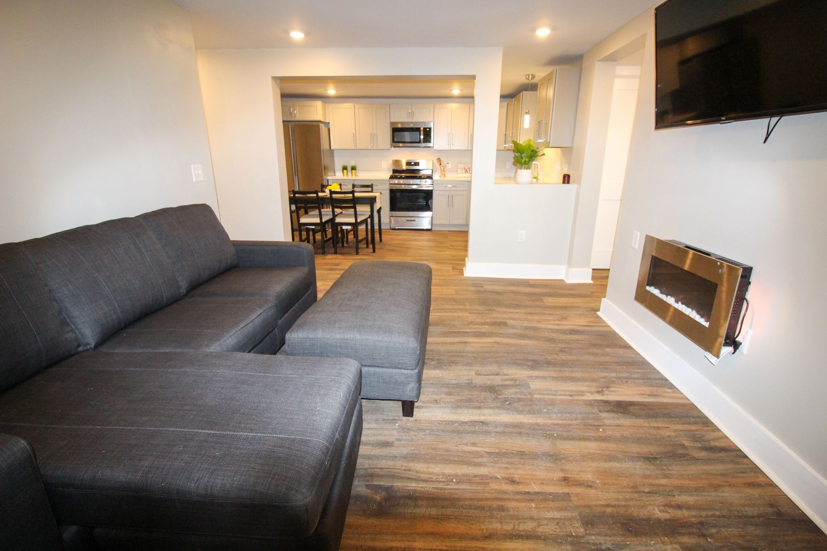 The home is available fully-furnished with a smart TV, couch, dining room table, and chairs. Beds, desks, and dressers are also provided at no extra cost.
