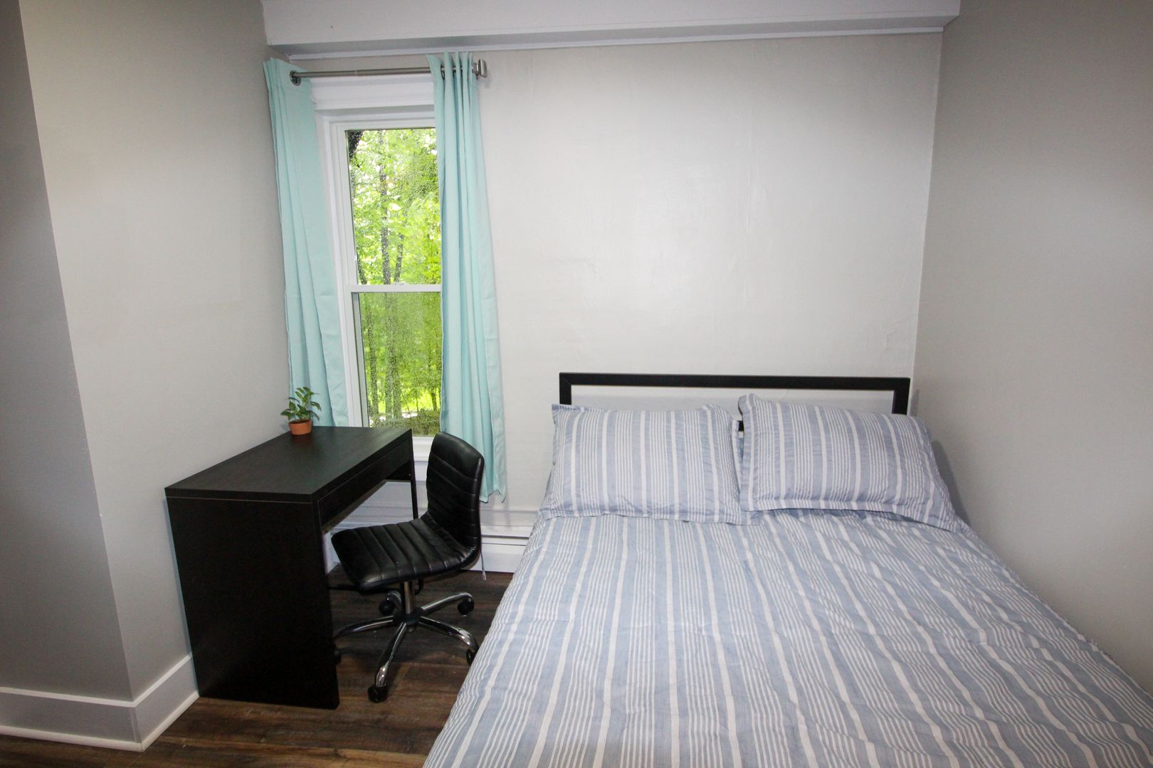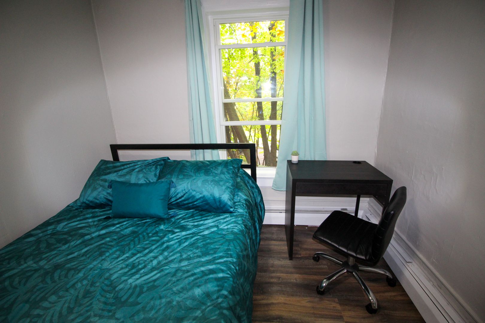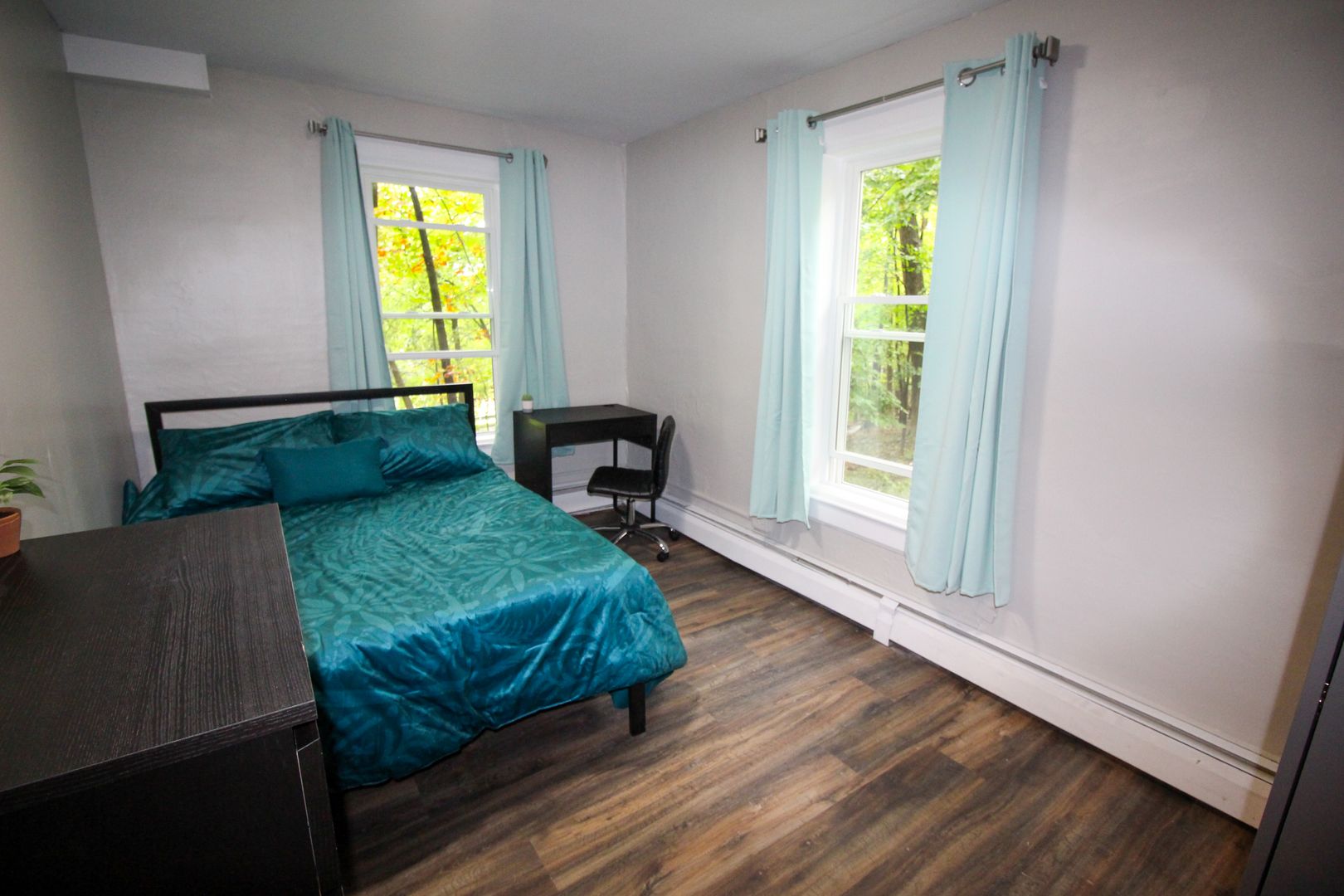 The home is available fully-furnished with a smart TV, couch, dining room table, and chairs. Beds, desks, and dressers are also provided at no extra cost.
