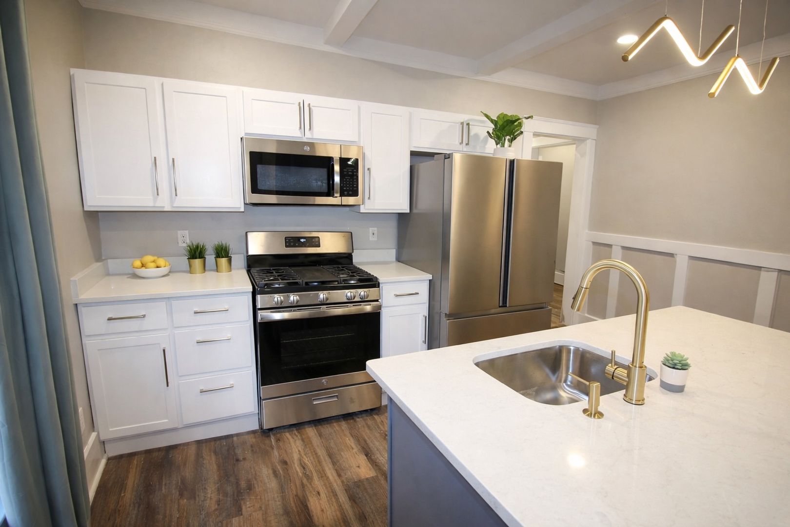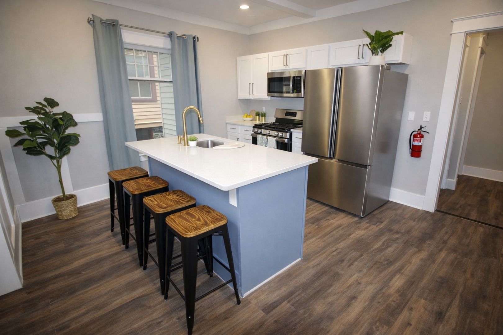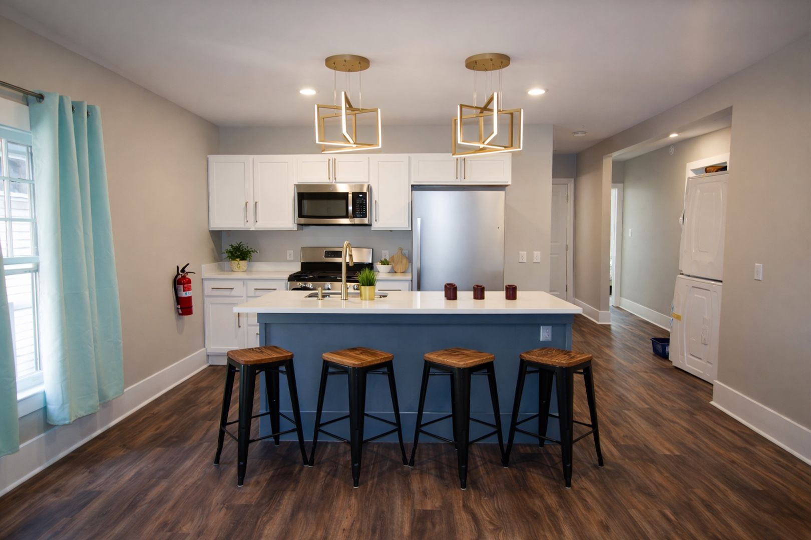 This 4-bedroom apartment was extensively renovated in the summer of 2021. The apartment features all new flooring, furnishings, and contemporary finishes. Enjoy modern amenities like in-unit laundry and stylish new lighting fixtures. The updated kitchen features quartz countertops and new stainless steel appliances. The bathrooms feature new vanities and custom tiling.