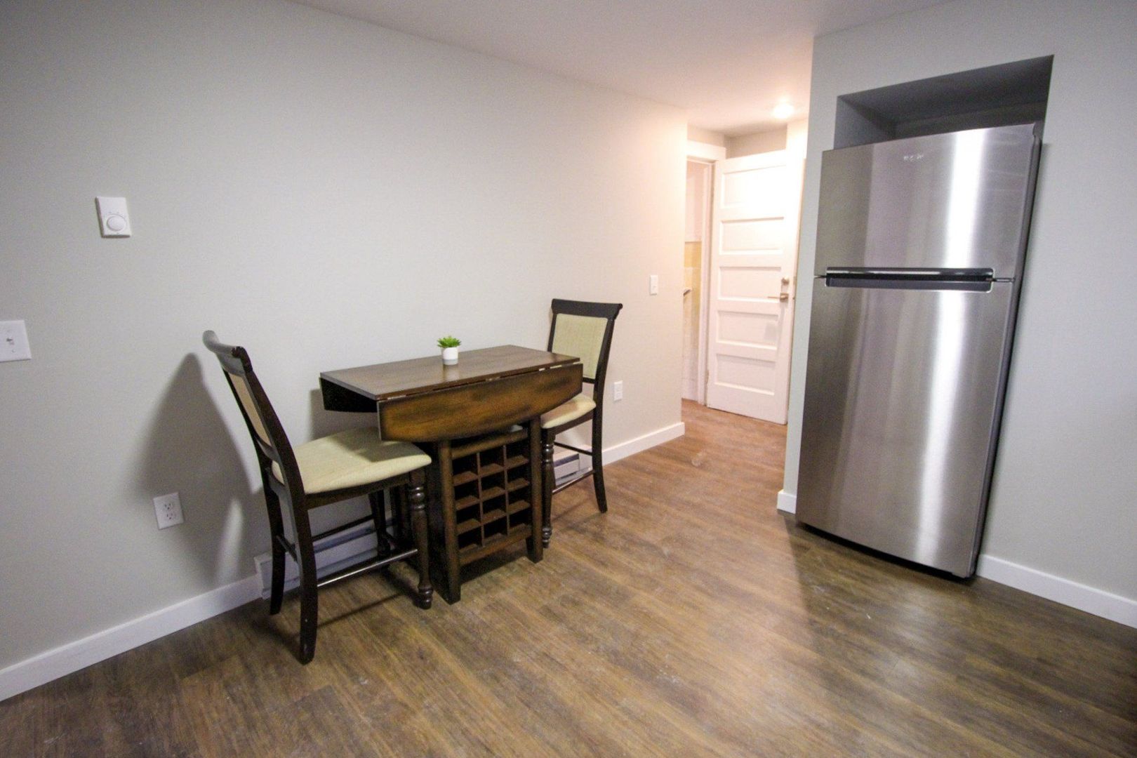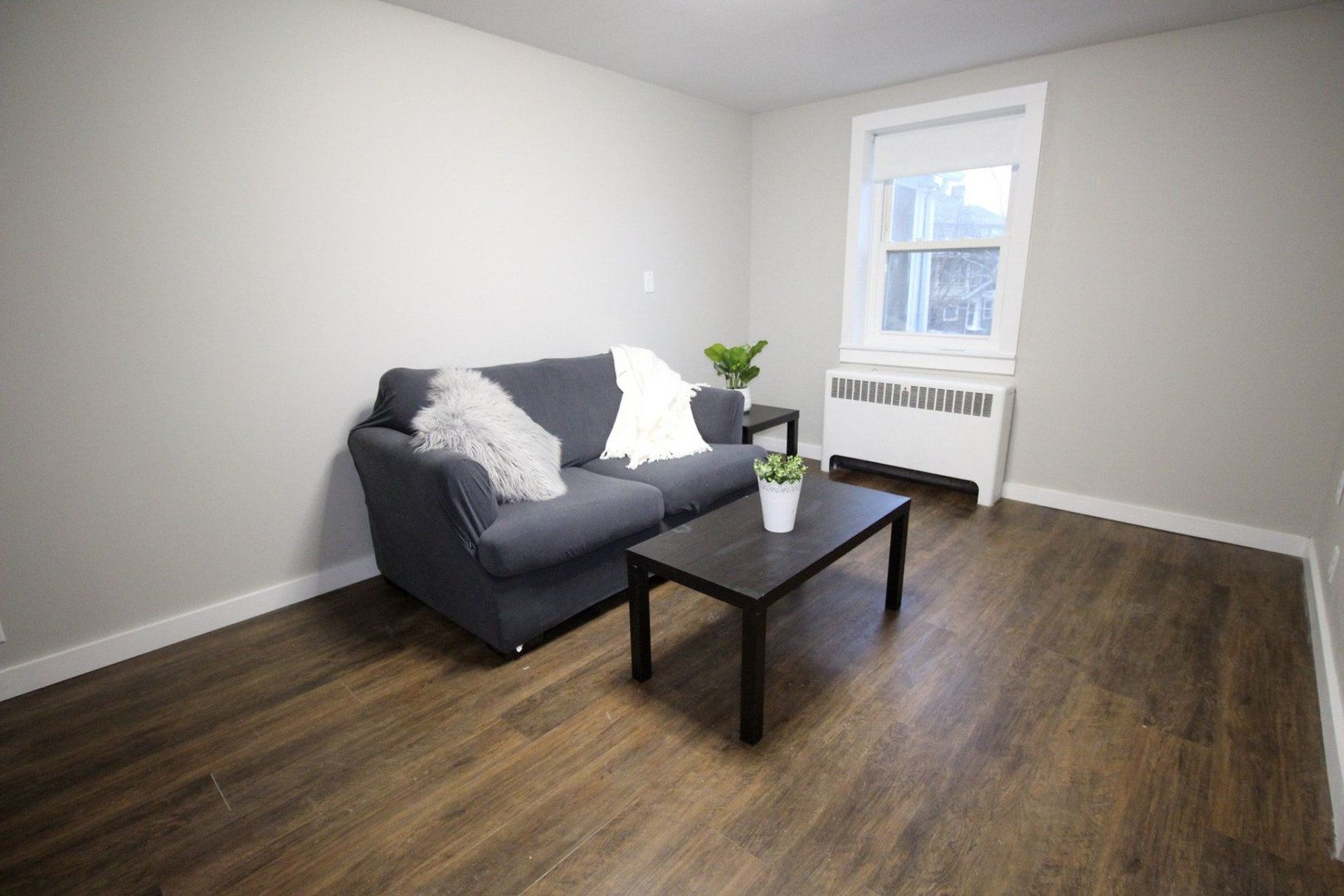 Apartment comes furnished with a double size bedframe and mattress. Dining room table, chairs and couch.