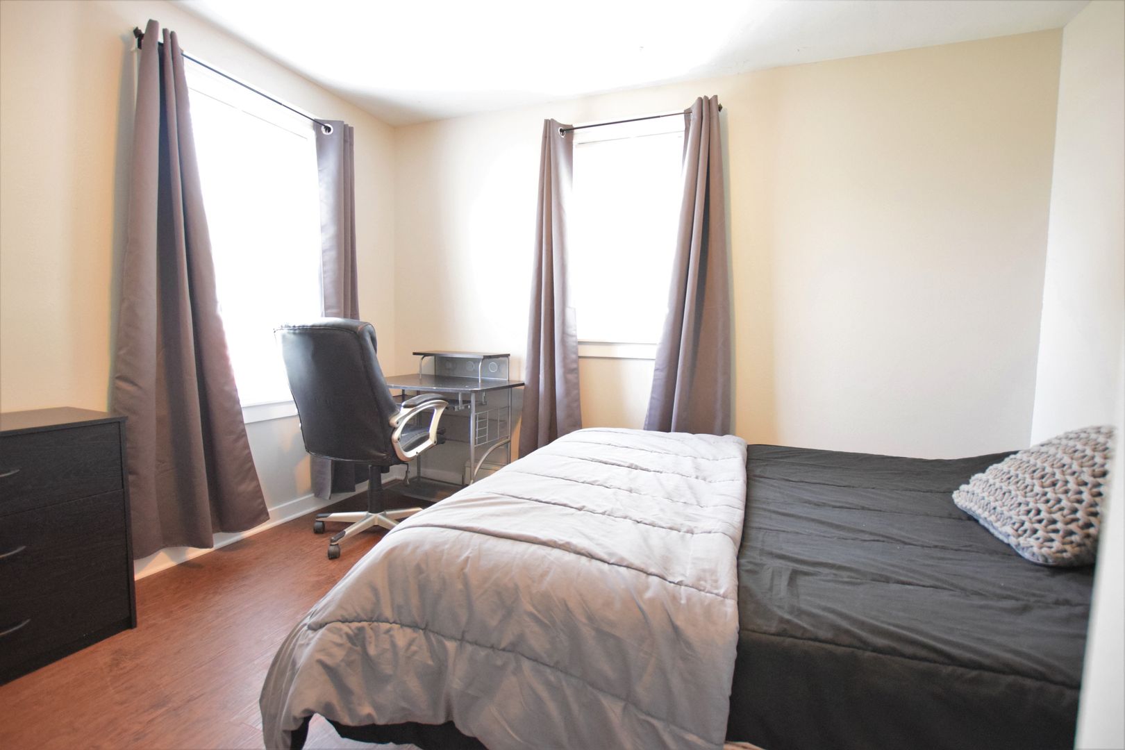 This apartment is the second floor of an up/down duplex and was newly renovated in 2018. There are 3 bedrooms and 2 full bathrooms on each floor. The home features modern finishes like luxury vinyl tiling, stainless steel appliances, and large windows. In the kitchen there are new granite countertops and a dishwasher. The bathrooms are custom-tiled and there is free laundry in the unit.