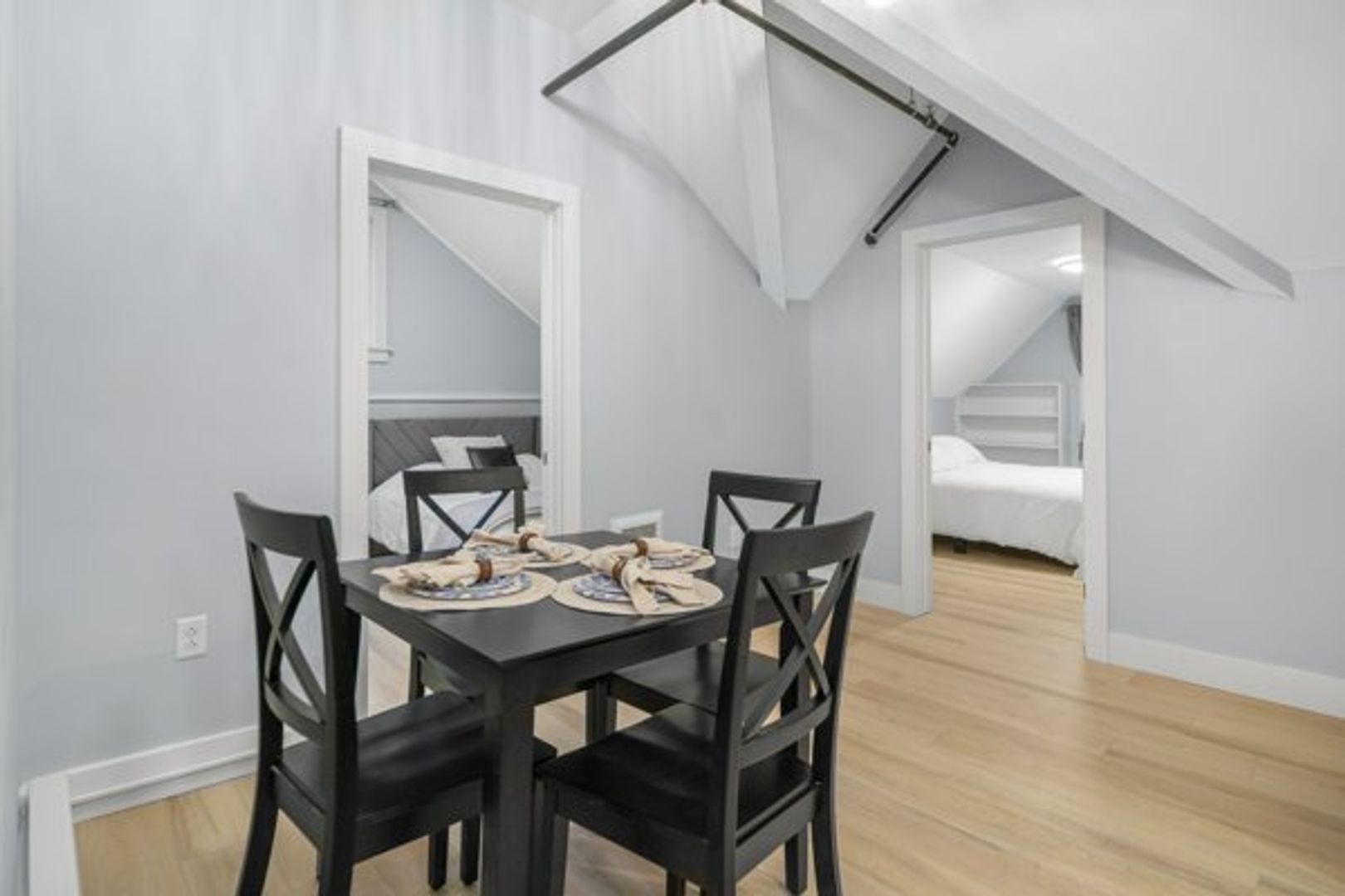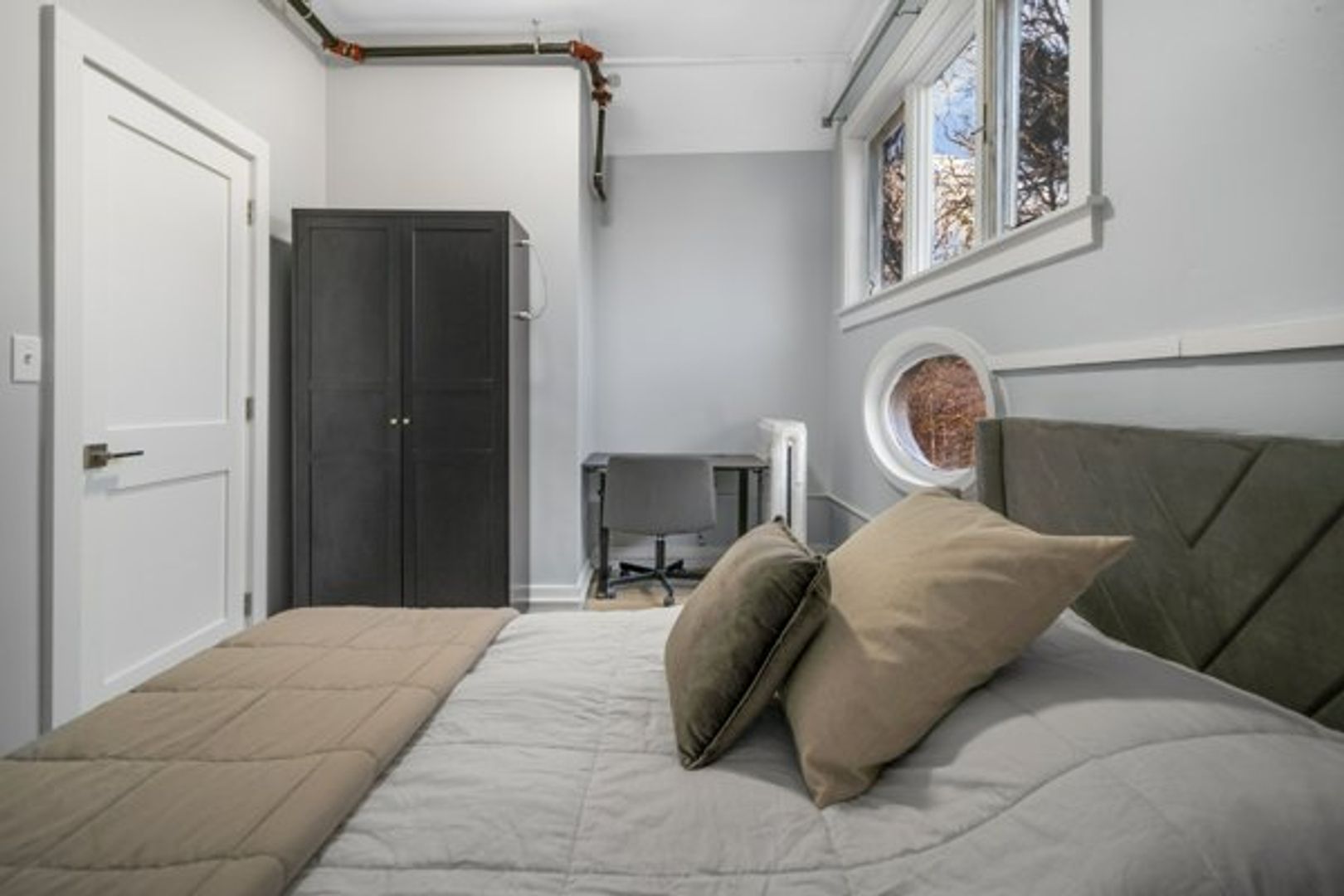 Each apartment comes fully furnished and features all new kitchens, upgraded bathrooms, new flooring and remodeled living and bedroom areas. Enjoy this home's classic charm blended with modern amenities like custom tile baths, LED vanity mirrors, smart lights and digital door access. The kitchens feature a full suite of new stainless steel appliances, wood cabinets, and quartz countertops. Common areas feature new furnishings including wall-mounted flat screen TVs and space for living and dining accordingly. Additional Furnishings include a couch, dining room table and chairs or kitchen counter seating, full size bed frame and mattress, desks and desk chair, and closet and dressers or large armoire in each bedroom.