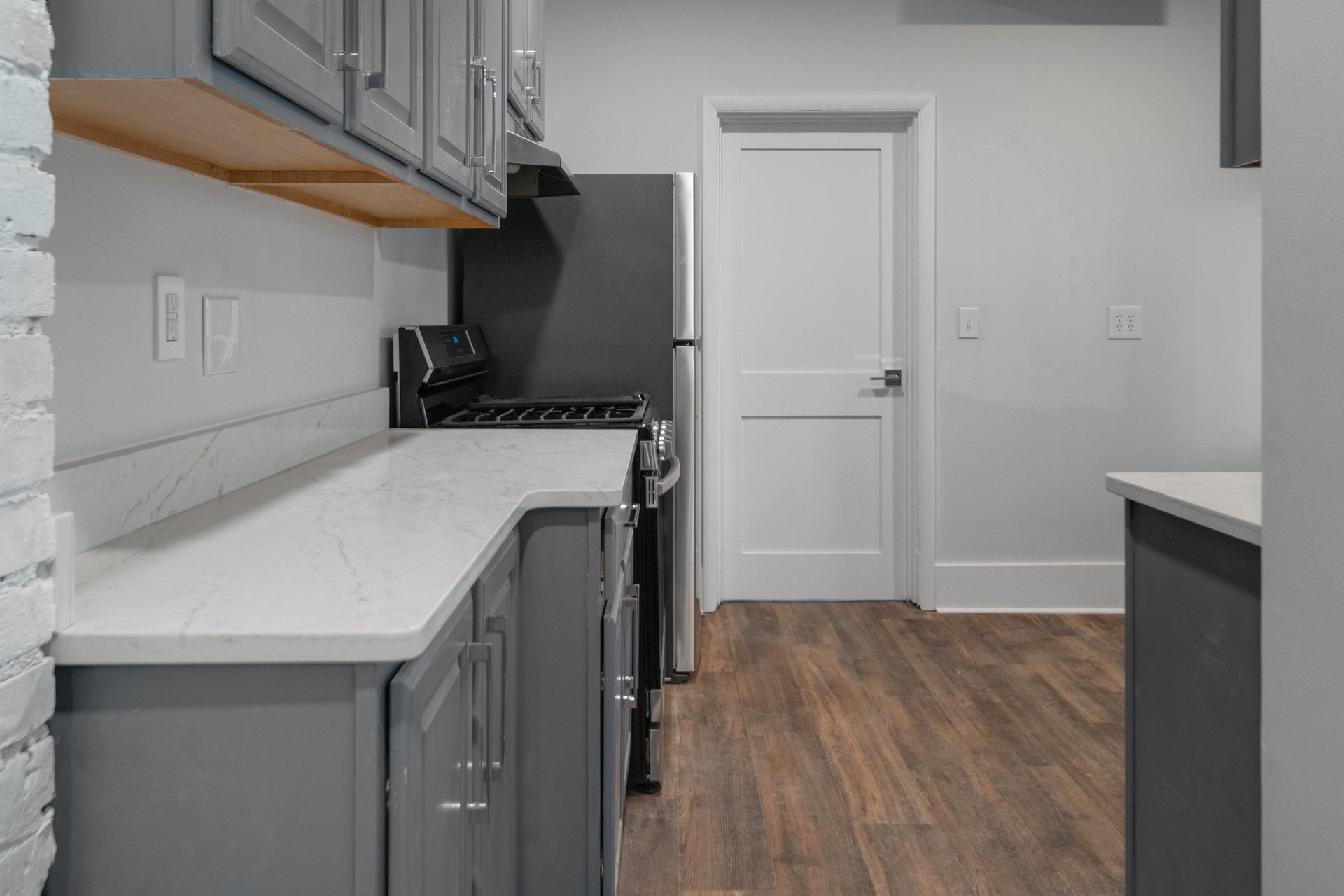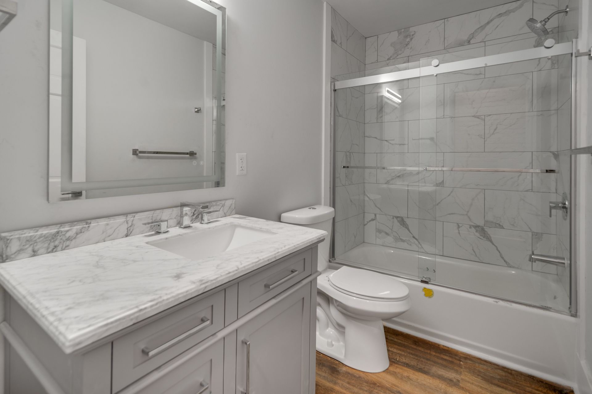 This unit was renovated in the winter of 2021 and features modern finishes such as quartz countertops, stainless steel appliances, new kitchen cabinets, and custom tiling in the bathrooms. There is luxury vinyl tile throughout the apartment and a lot of natural light.